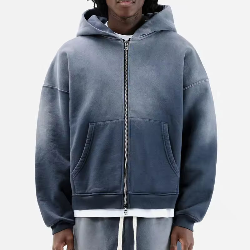 เสื้อมีฮู้ดสำหรับผู้ชายเสื้อฮู้ด500ซีดจางมีซิปไซส์ใหญ่พิเศษ