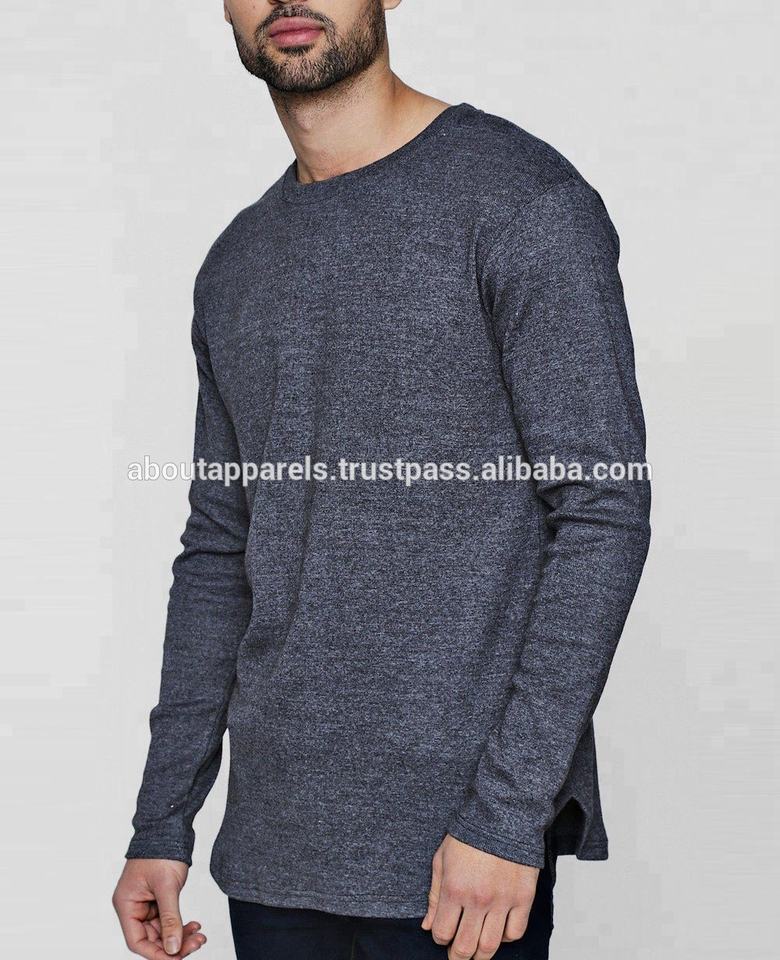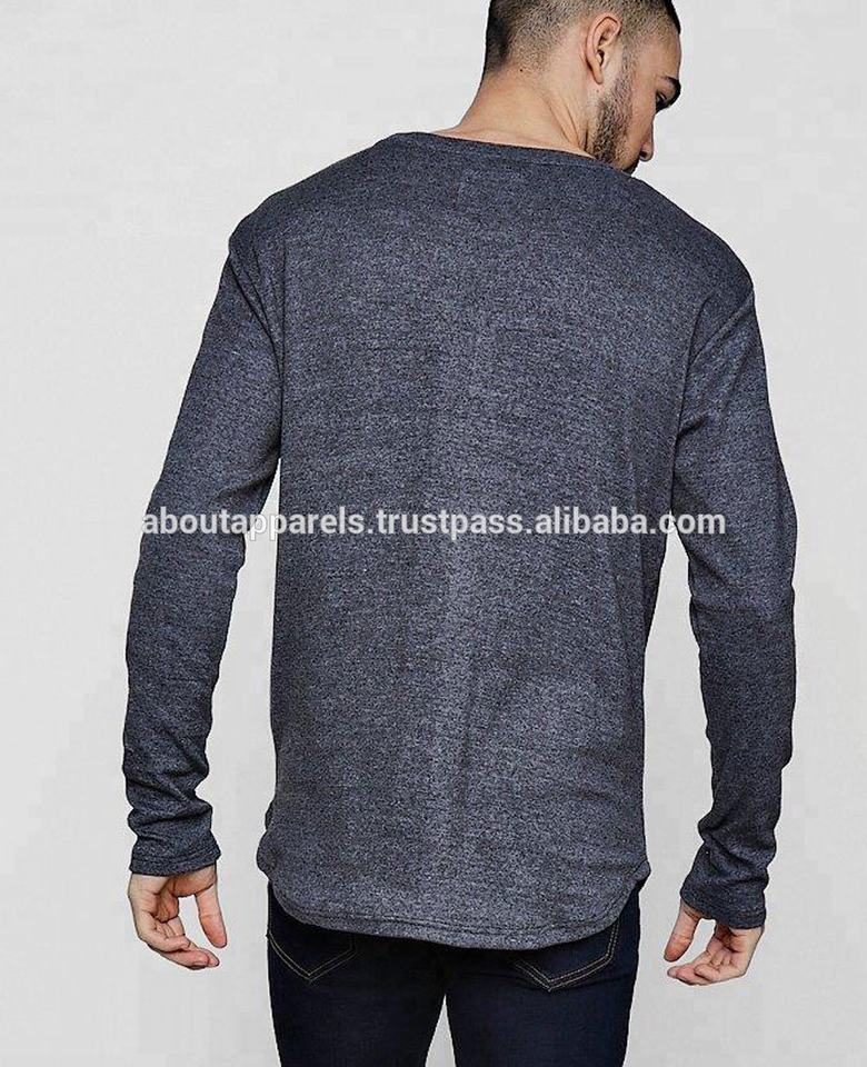 Cheap Price Custom Your Own Brand Men's Eco-Friendly Quick Dry Cotton Bamboo Long Sleeve T-Shirt with Ribbed Curved Hem