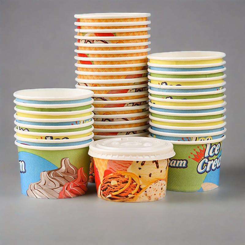แก้วกระดาษแบบใช้แล้วทิ้ง ราคาถูก กันน้ำ 2 ชั้น เป็นมิตรกับสิ่งแวดล้อม ขนาด 4, 5, 8, 12 ออนซ์ สำหรับใส่โยเกิร์ตและไอศกรีม เหมาะสำหรับใช้ในฤดูร้อน