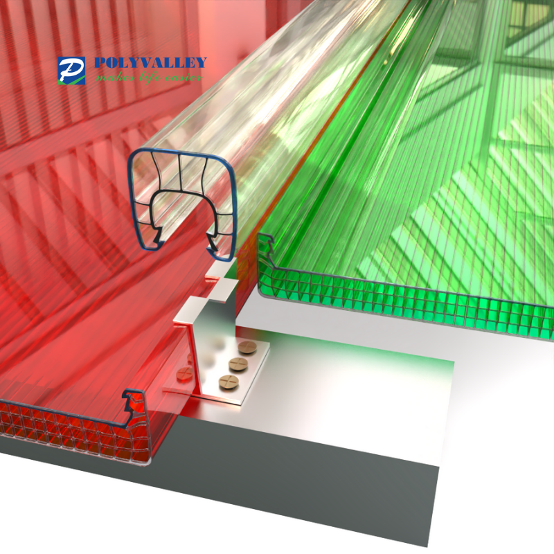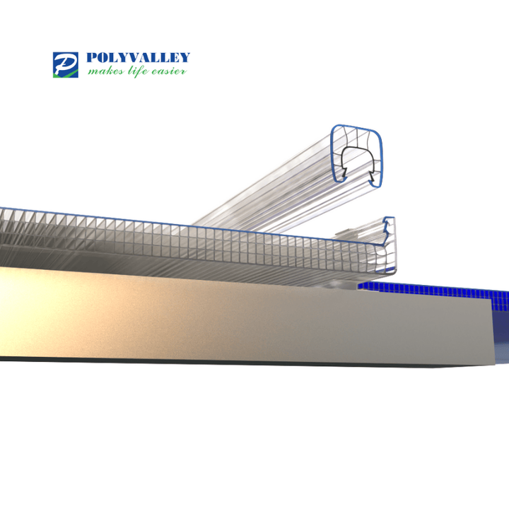 แผ่นหลังคาโพลีคาร์บอเนตซุ้มรูปตัวยูแผงโพลีคาร์บอเนตแบบล็อกรูปตัวยู