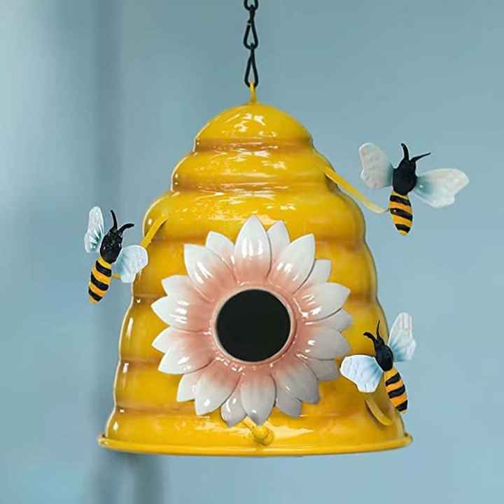 โรงงานราคาถูกโดยตรงแขวนในบ้านสวน Bee กรงนกปรับแต่งรูปร่างกรงนกเคลือบสีเหลืองในราคาไม่แพง
