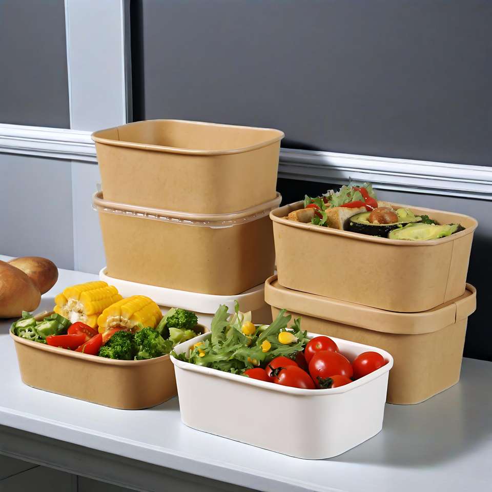 Cheap Price Food Grade Disposable Kraft Paper Container Salad Fried Rice Takeout Rectangle Food Box Kraft Paper Lunch