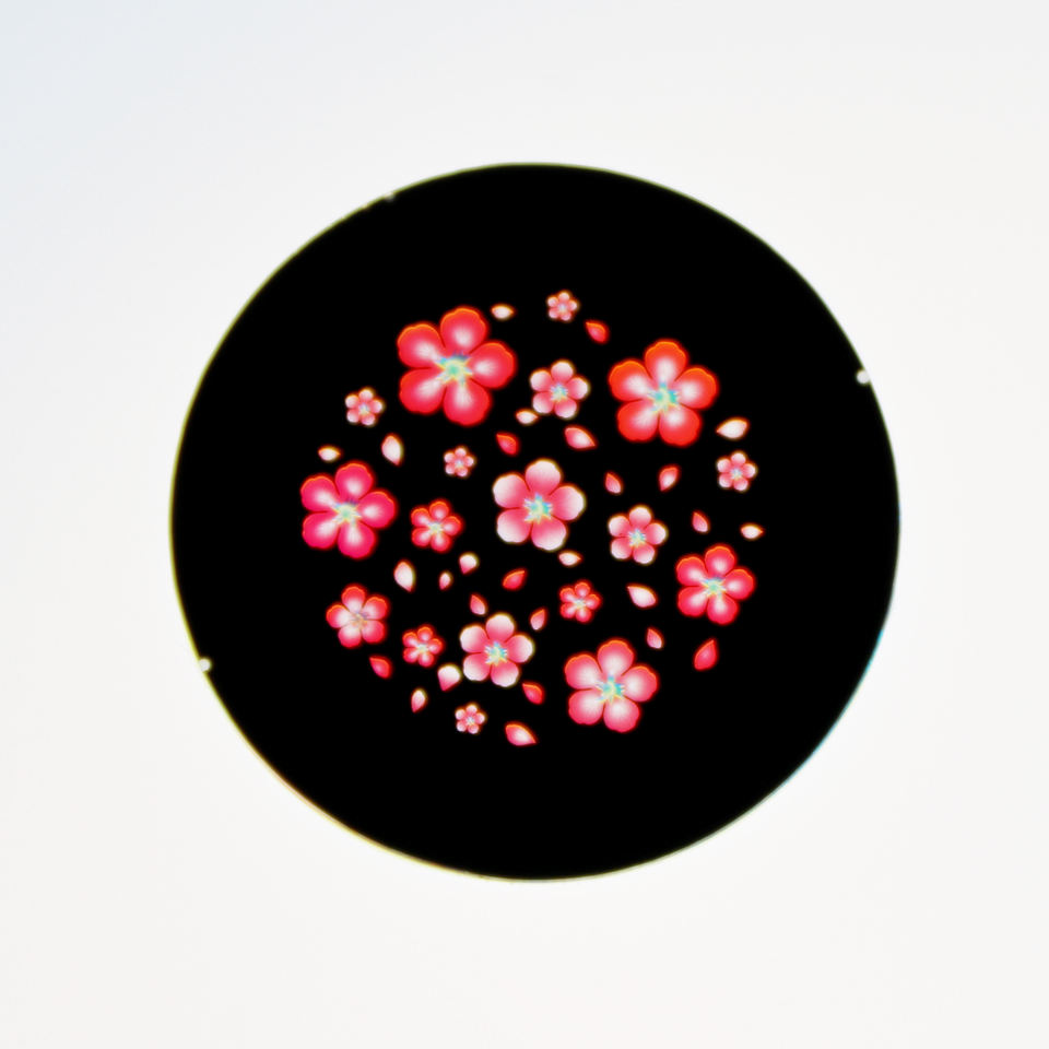 เลนส์กระจกโกโบสีเต็มรูปแบบโปรเจคเตอร์โลโก้ป้ายแก้วขนาดพิเศษ