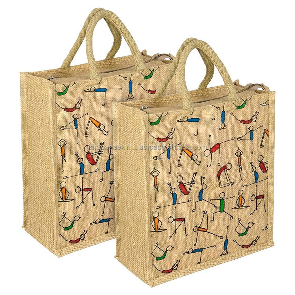 กระเป๋าหิ้วชายหาดราคาประหยัด กระเป๋าช้อปปิ้งแบบพกพา กระเป๋าผ้ากระสอบพิมพ์ลาย สำหรับซื้อของชำประจำวัน