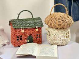 กระเป๋าไม้ไผ่สานมือสไตล์วินเทจสำหรับเด็กหญิงกระเป๋าถือจากเวียดนาม