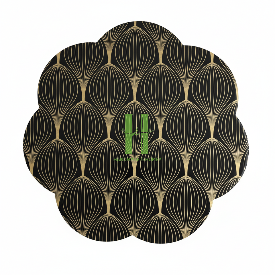 แผ่นรองจานรูปดอกไม้ทำจากไม้ไผ่เคลือบเงา งานแฮนด์เมดจากเวียดนาม ราคาถูก เป็นมิตรกับสิ่งแวดล้อม ขัดเงาด้วยมือ