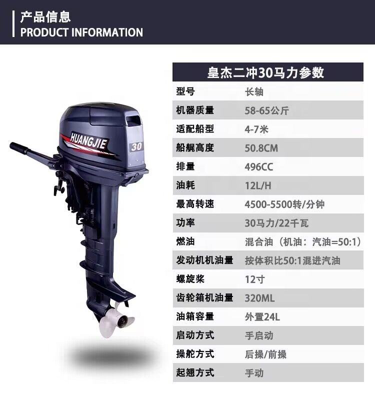 เครื่องยนต์เรือราคาถูกคุณภาพสูง Huangjie 30 แรงม้า 2 จังหวะ เครื่องยนต์เรือติดท้ายแบบมารีน เหมือนเครื่องยนต์เรือยามาฮ่า