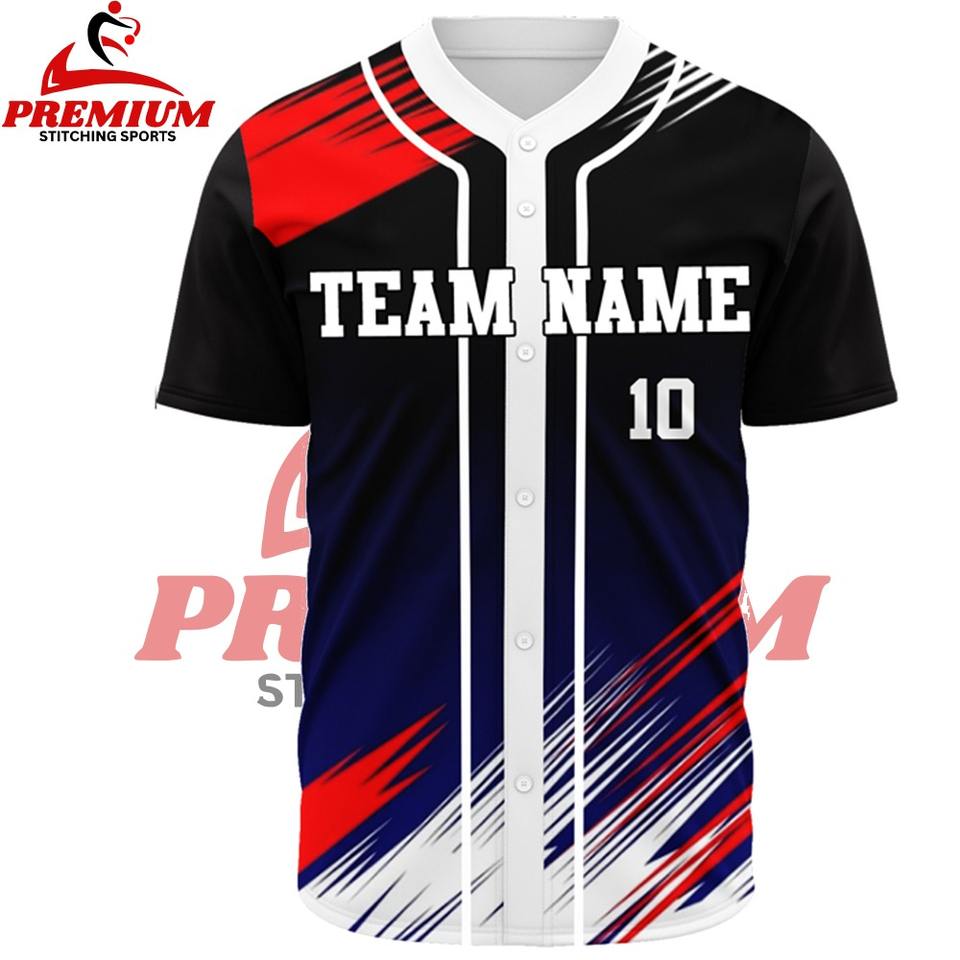 เสื้อเบสบอลผู้ชายราคาถูกคุณภาพสูง 100% โพลีเอสเตอร์ ระบายอากาศได้ดี คอวี ปรับแต่งชื่อทีมและแบรนด์ได้ตามต้องการ