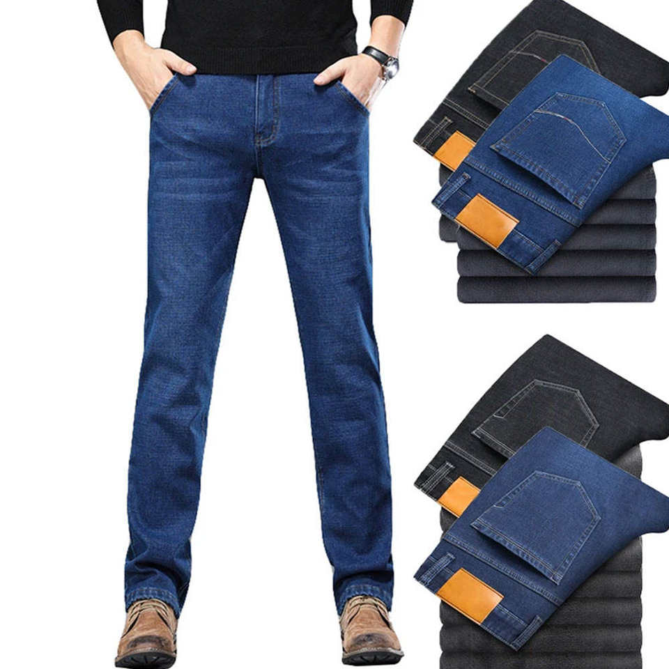 กางเกงยีนส์ราคาถูกสำหรับผู้ชาย กางเกงยีนส์ทรงสลิมฟิต ดีไซน์เนอร์แบรนด์ดัง ผ้ายีนส์ยืด สีน้ำเงินและสีดำ กางเกงยีนส์ผู้ชายแบบฟอก
