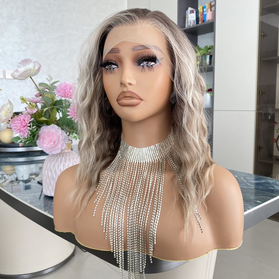 วิกผมสีน้ำตาลอ่อนประกายบลอนด์ ราคาถูก แสกกลาง 13x6 ลูกไม้โปร่งใส ลอนแน่น วิกผมสังเคราะห์ทนความร้อน