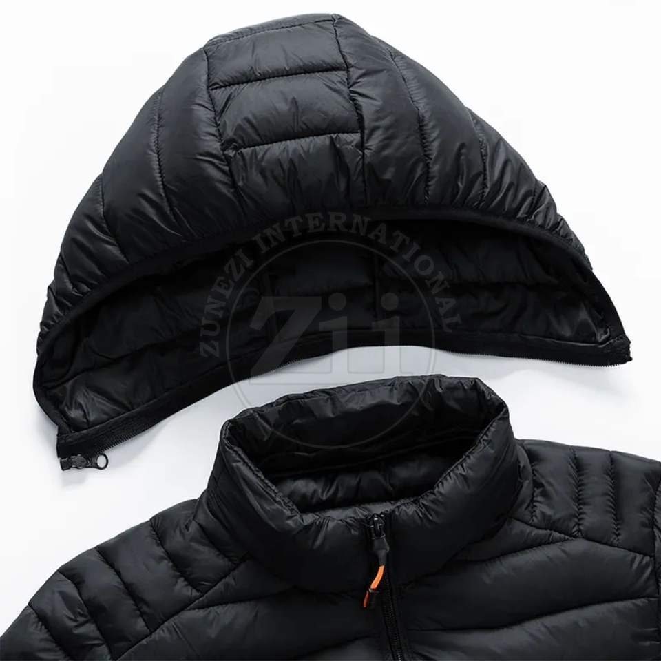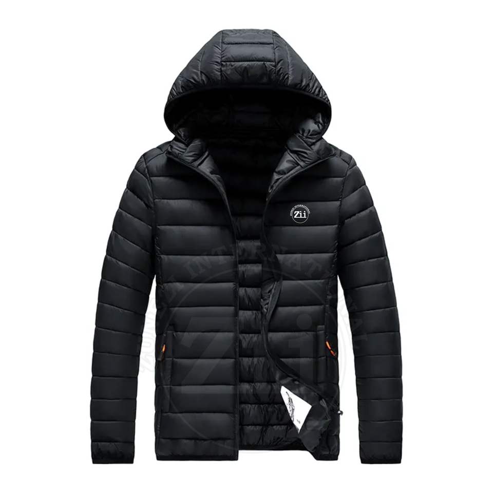 แจ็กเก็ตขนเป็ดปกติสำหรับผู้ชายมีฮู้ดกันน้ำบุนวมมีซิปปิดขนาดพิเศษเป็นมิตรกับสิ่งแวดล้อม