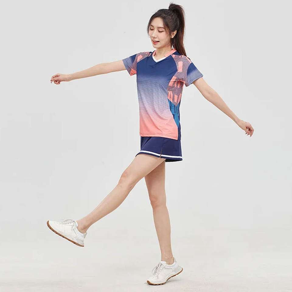 เสื้อกางเกงขาสั้นแห้งเร็วสำหรับผู้หญิงชุดทีมของผู้ใหญ่เสื้อแห้งเร็วระบายอากาศได้ดี