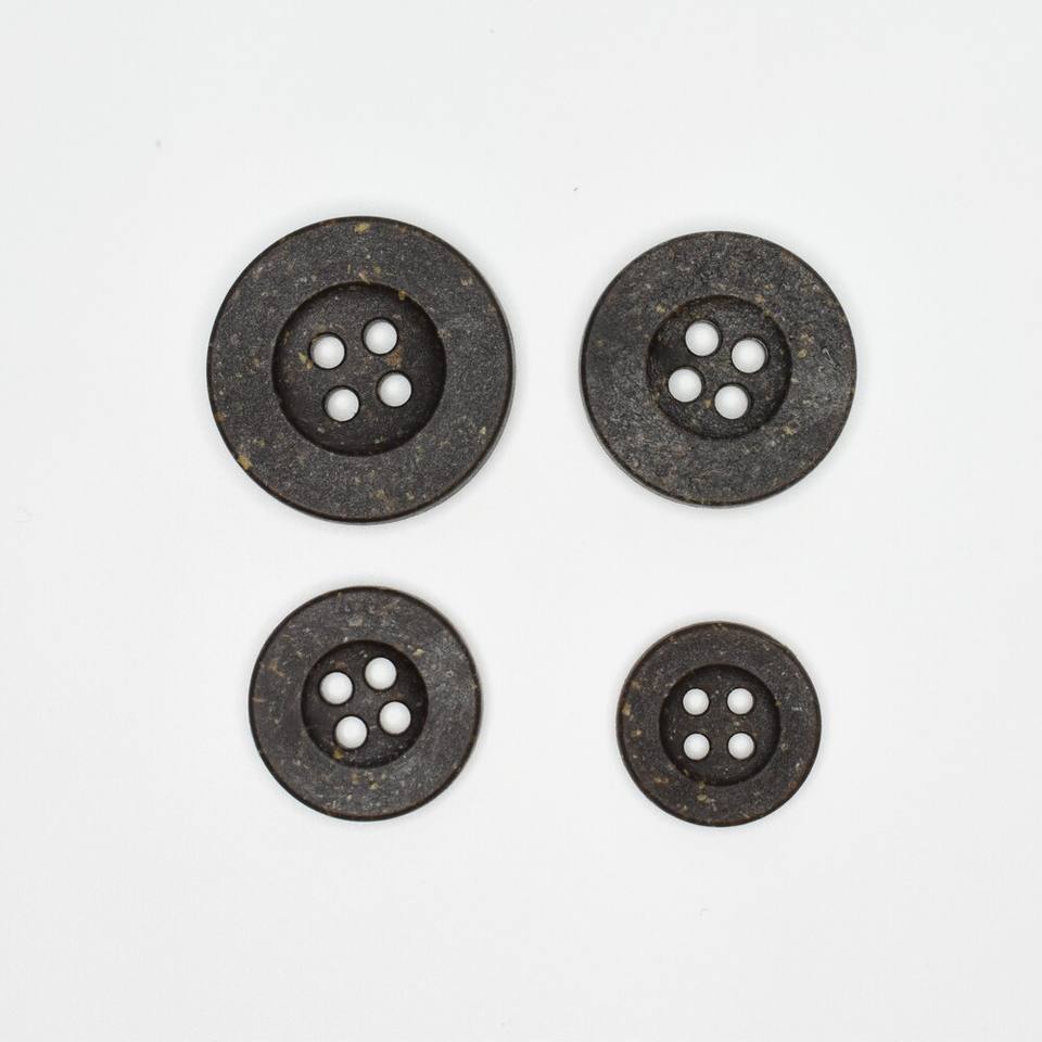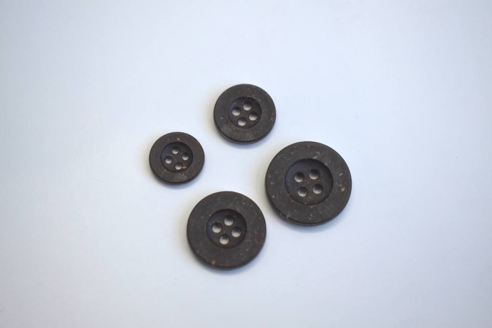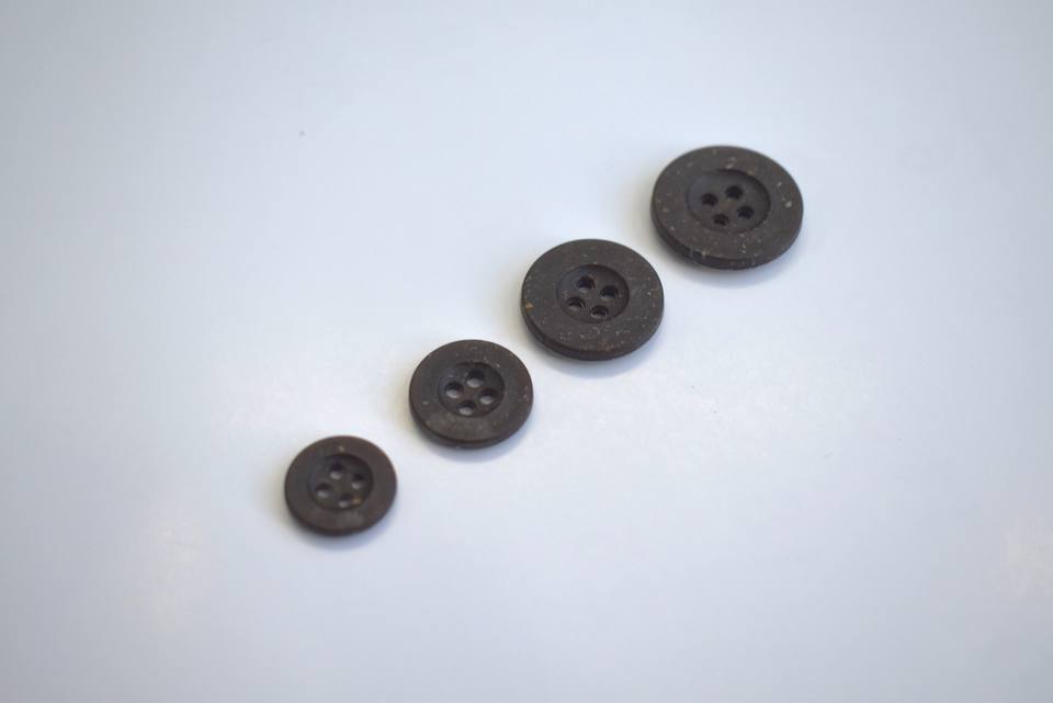 กระดุมพลาสติกทรงกลมแบบแบนราคาถูก มี 4 รู ขนาด 20 มม. ผลิตจากวัสดุไบโอ-กาแฟ เป็นมิตรกับสิ่งแวดล้อม จำนวน 500 ชิ้น สำหรับเสื้อผ้า ผลิตในเวียดนาม