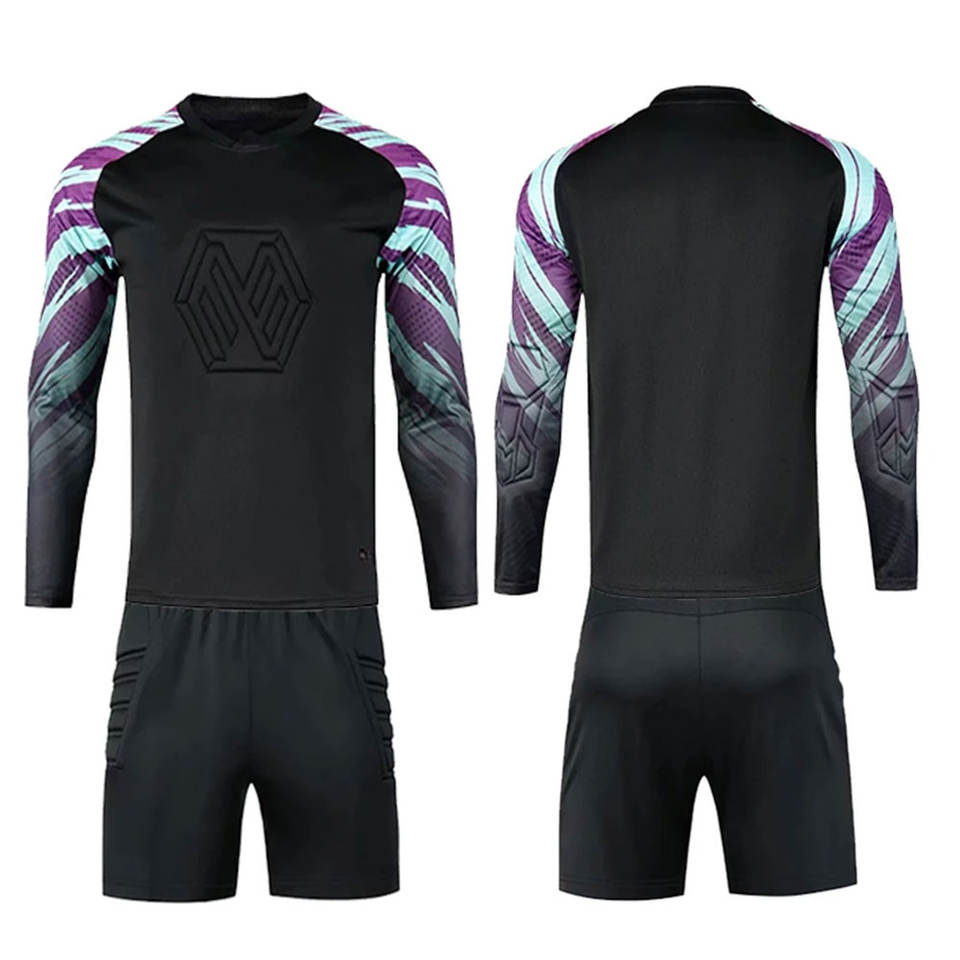 ชุดอุปกรณ์ฟุตบอลผ้าโพลีเอสเตอร์แห้งเร็วชุดอุปกรณ์สำหรับเล่นฟุตบอลแบบ100% แขนยาว