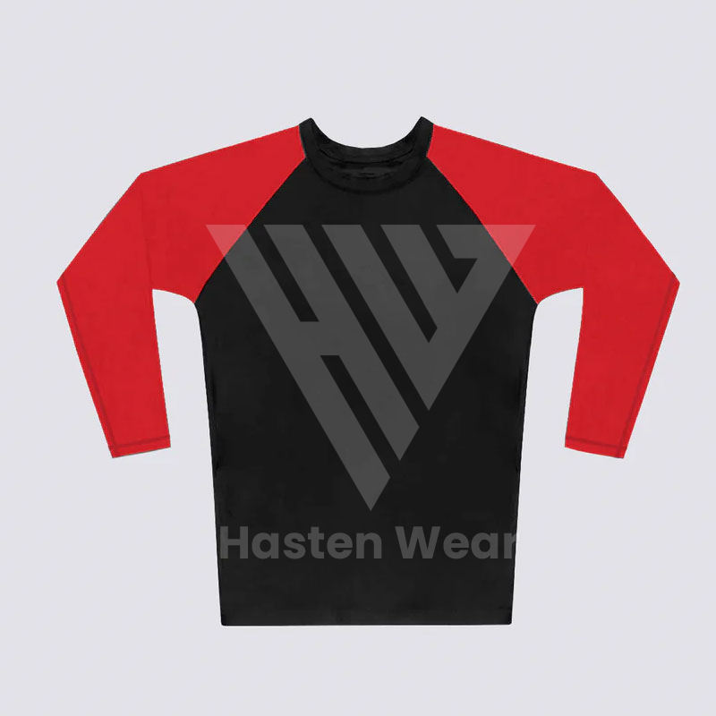 เสื้อกีฬาแขนแร็กแลนของผู้ชายเสื้อแร็กแลนเสื้อแร็ชการ์ดแบบระบายอากาศได้ดีสีพื้น