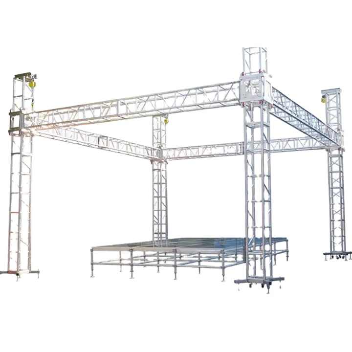 โครงเสาไฟอลูมิเนียมโครงสร้างเสียงทรงสี่เหลี่ยมน้ำหนักเบาหลังคาฉากหลังเวทีลำโพง