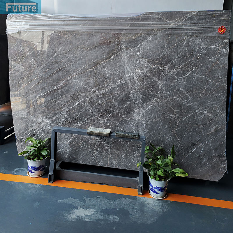 แผ่นหินอ่อนสีเทาสีขาวสำหรับกระเบื้องปูพื้นแผ่นผนังเคาน์เตอร์ครัวเกาะหินอ่อนโต๊ะเครื่องแป้ง