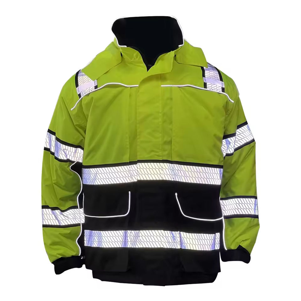 เสื้อโค้ทใส่ทำงานในฤดูหนาวอันซีคลาส3 Hi VIS สะท้อนแสงสีเหลืองอ่อนกันน้ำสำหรับจราจร