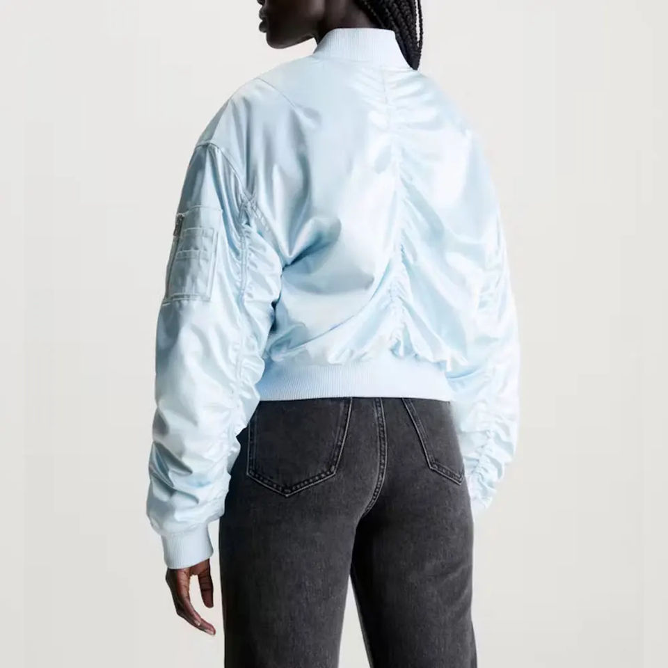 เสื้อแจ็คเก็ตครอปท็อปสไตล์วาร์ซิตี้สำหรับผู้หญิง