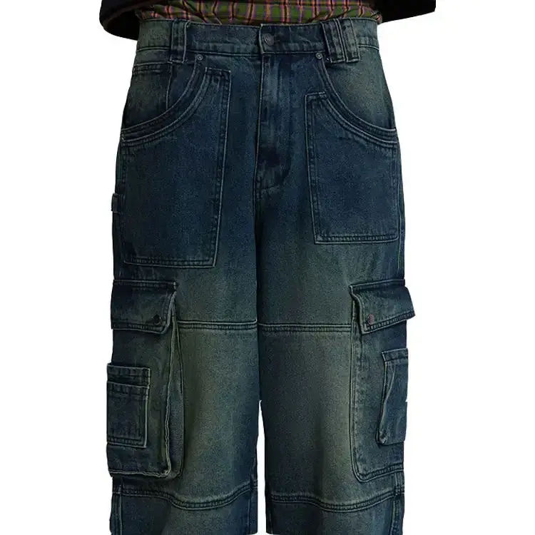 Cheap Rate Men's High Street 6 Pockets Cargo Denim Jean Pants Plus Size Men's Denim Jeans Washed Custom Logos OEM Service
