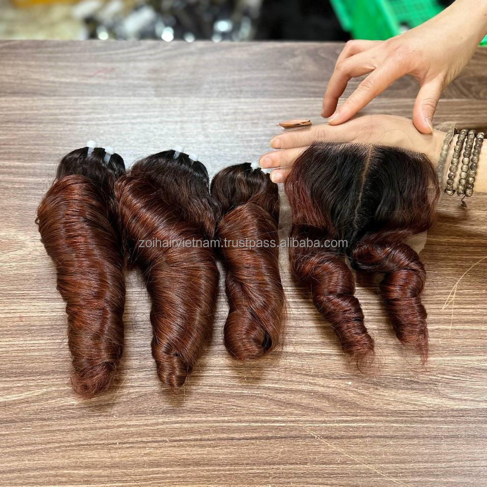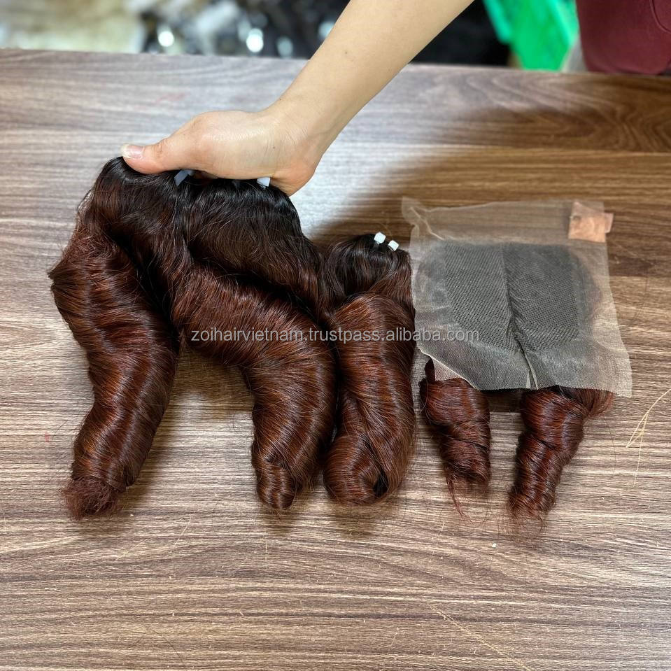 ผมเวียดนามแท้ราคาถูกแบบเป็นมัด ทรงหยิกเด้งดึ๋ง พร้อมเชือกผูกผมด้านหน้าแบบลูกไม้ สำหรับทำวิกผมแบบติดลูกไม้ด้านหน้า ไม่ต้องใช้กาว