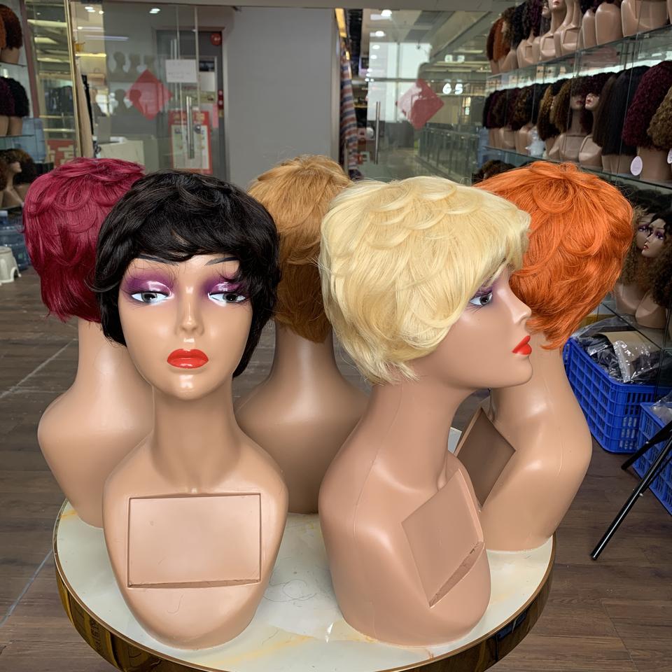 วิกผมสั้นแบบไม่มีเชือกผูก ผลิตด้วยเครื่องจักร ราคาถูก พร้อมส่ง มี 12 สีในสต็อก ผมแท้ 100% ราคาขายส่ง # สีไวน์ 99J