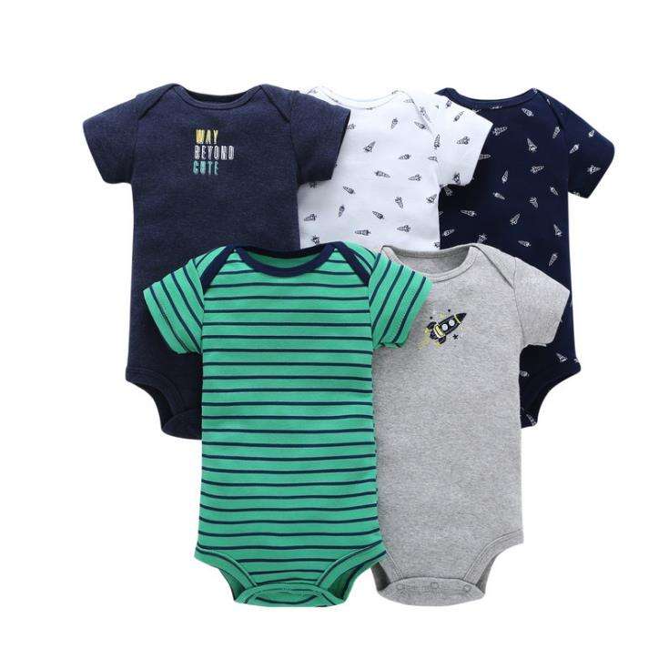 ชุดบอดี้สูทเด็กอ่อนแขนสั้นผ้าฝ้าย 5 ชิ้น ราคาประหยัด สำหรับฤดูร้อน เสื้อผ้าเด็กแรกเกิด เสื้อผ้าเด็กวัยหัดเดิน เสื้อผ้าเด็กผู้ชาย