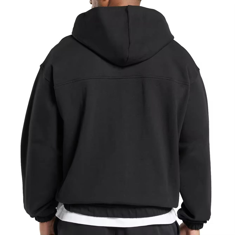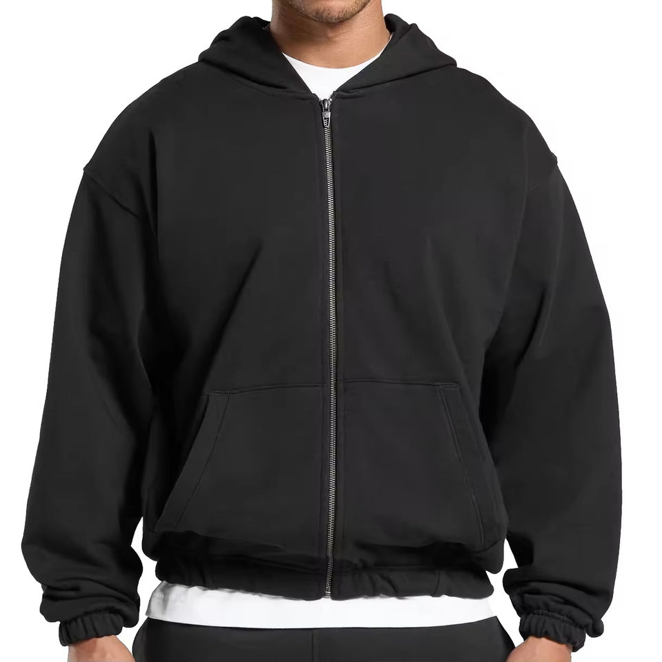 ผู้ผลิตเสื้อฮู้ดซิปปักลายราคาถูก รับผลิตตามแบบ สวมใส่สบาย ทรงหลวม ไหล่ตก แฟชั่นสำหรับผู้ชาย ผ้าฝ้าย 100%