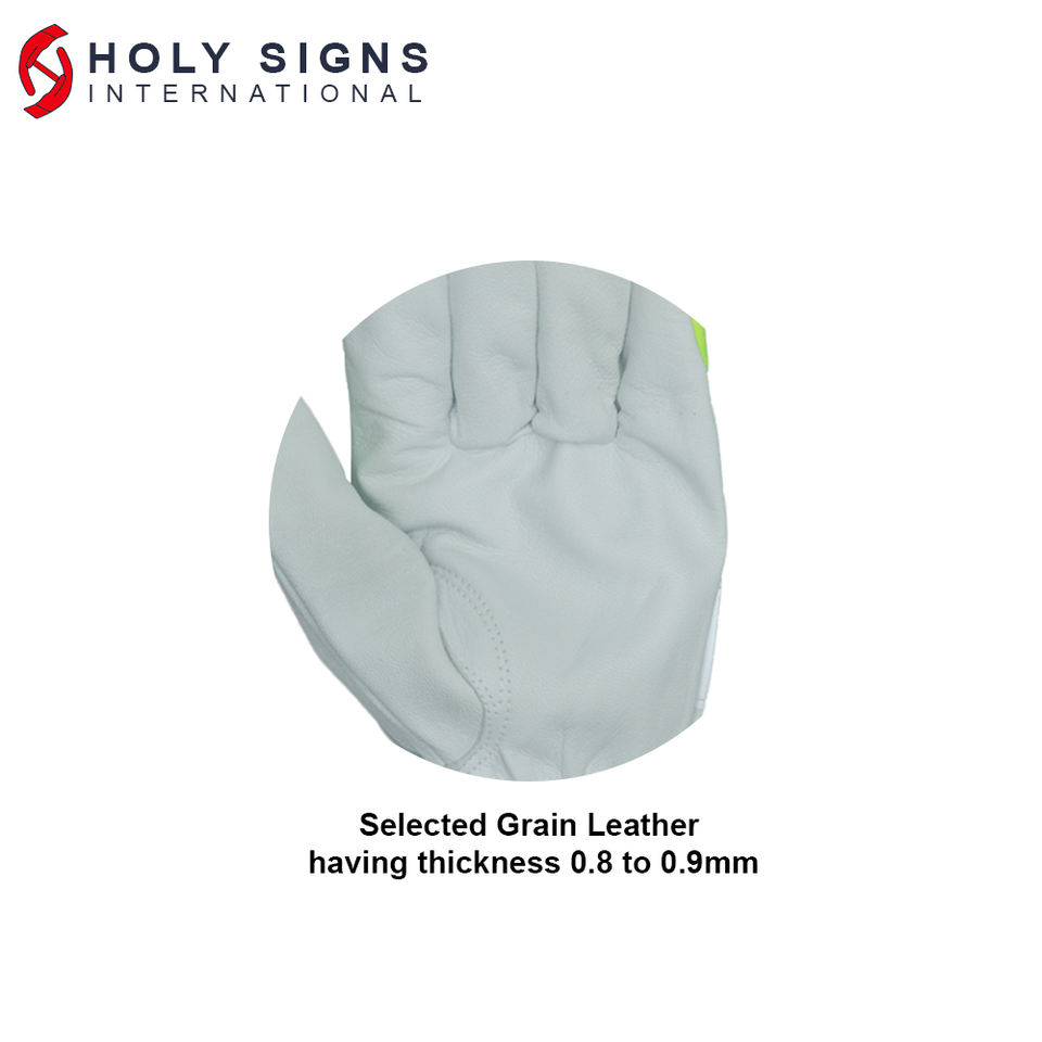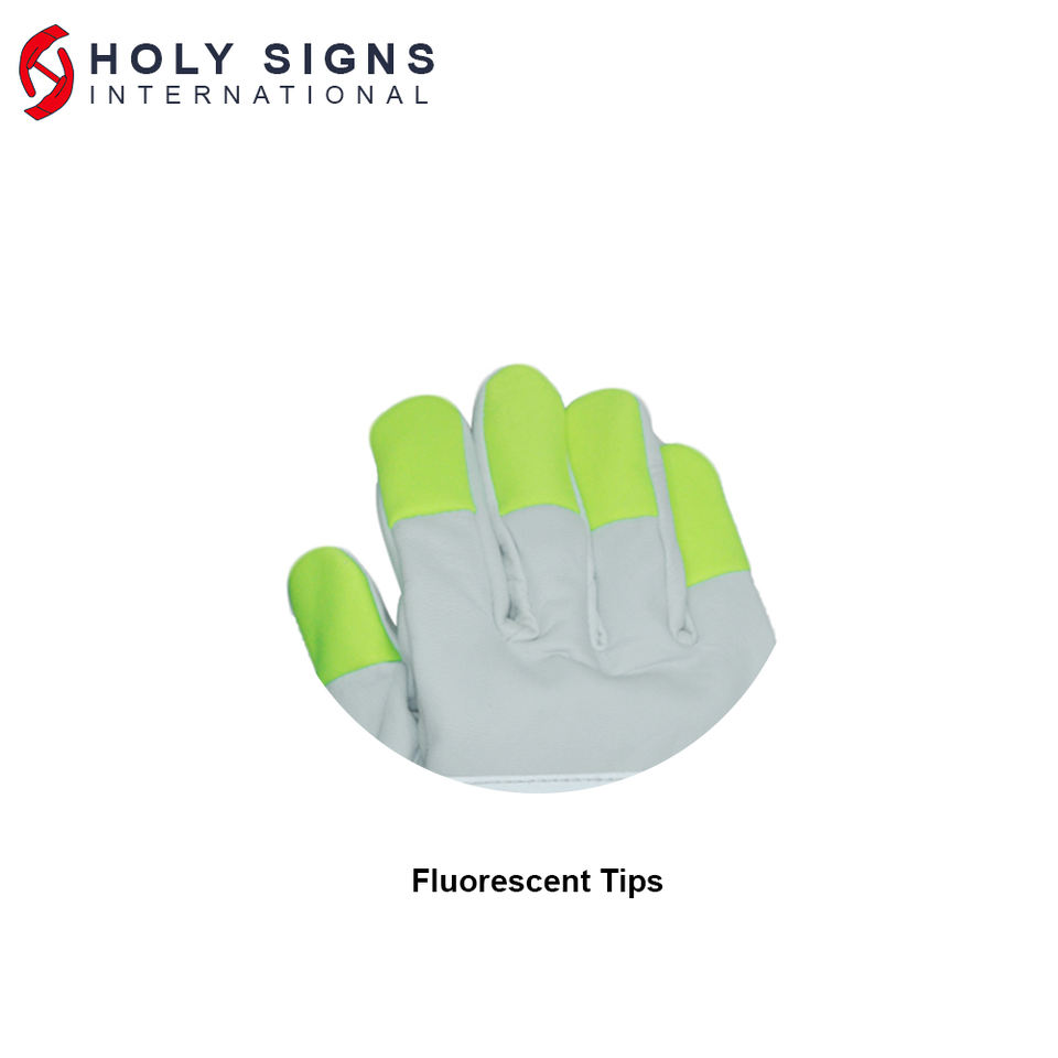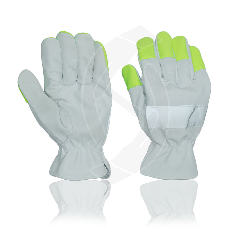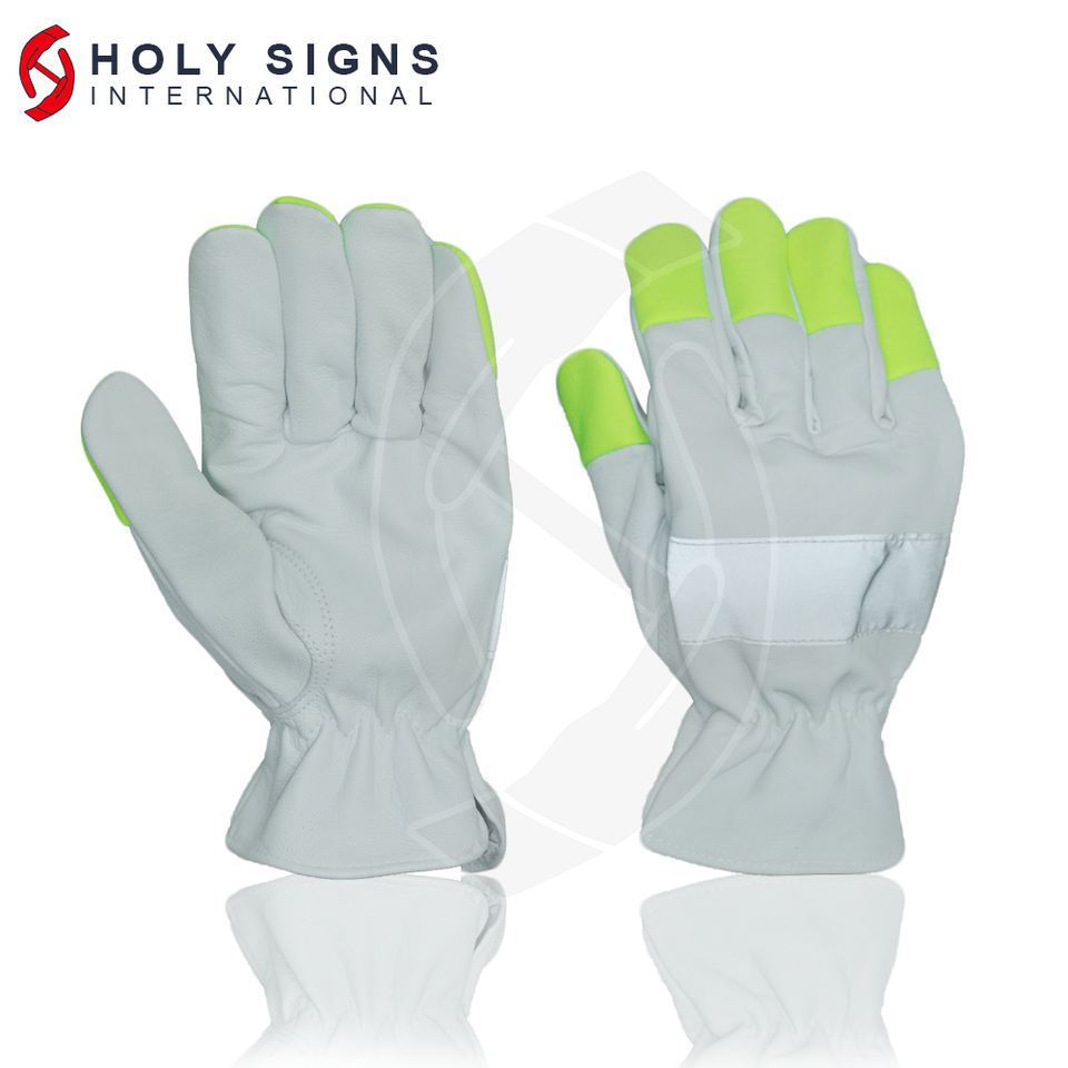ถุงมือนิรภัยอเนกประสงค์ไฮวิซเทปเรืองแสงถุงมือหนังแกะสีขาวถุงมือขับรถสำหรับการก่อสร้างในอุตสาหกรรม