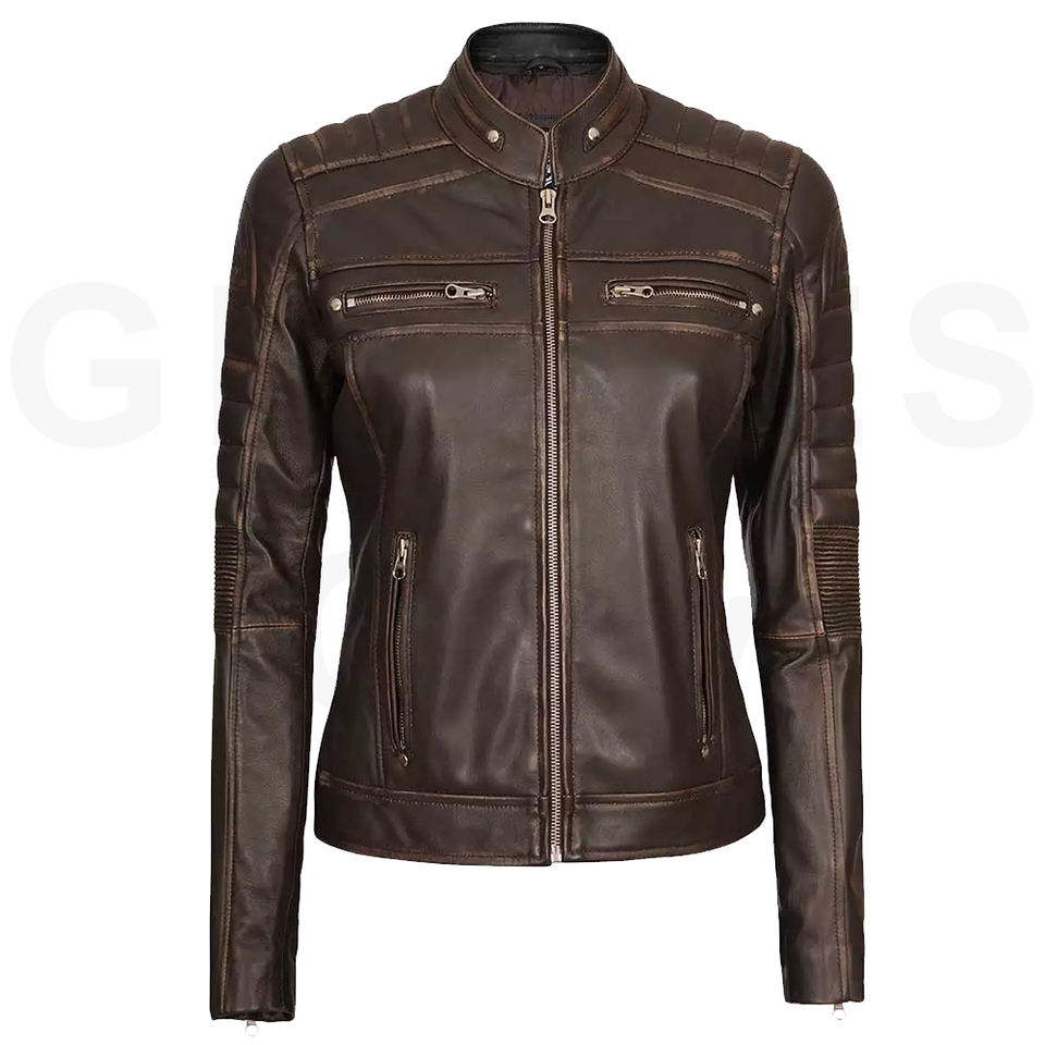 แจ็กเก็ตหนังแท้สำหรับผู้หญิงทรงสลิมฟิตแจ็คเก็ตหนังแฟชั่นสำหรับแข่งรถและมอเตอร์ไซค์