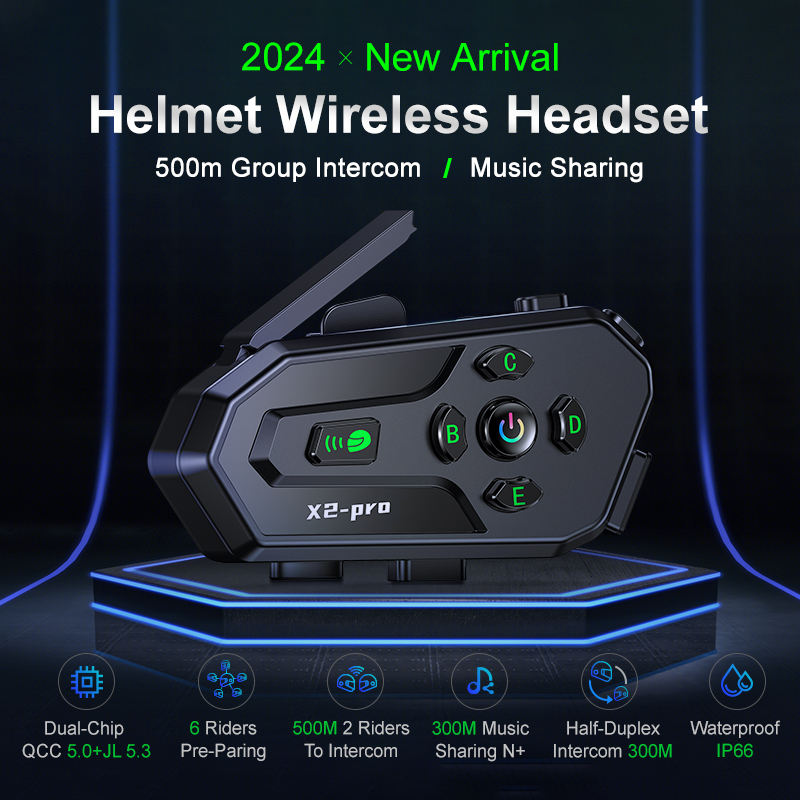 ชุดหูฟังไร้สาย X2-Pro กับอุปกรณ์หลายชิ้น300ม. สำหรับมอเตอร์ไซค์6คน500ม.