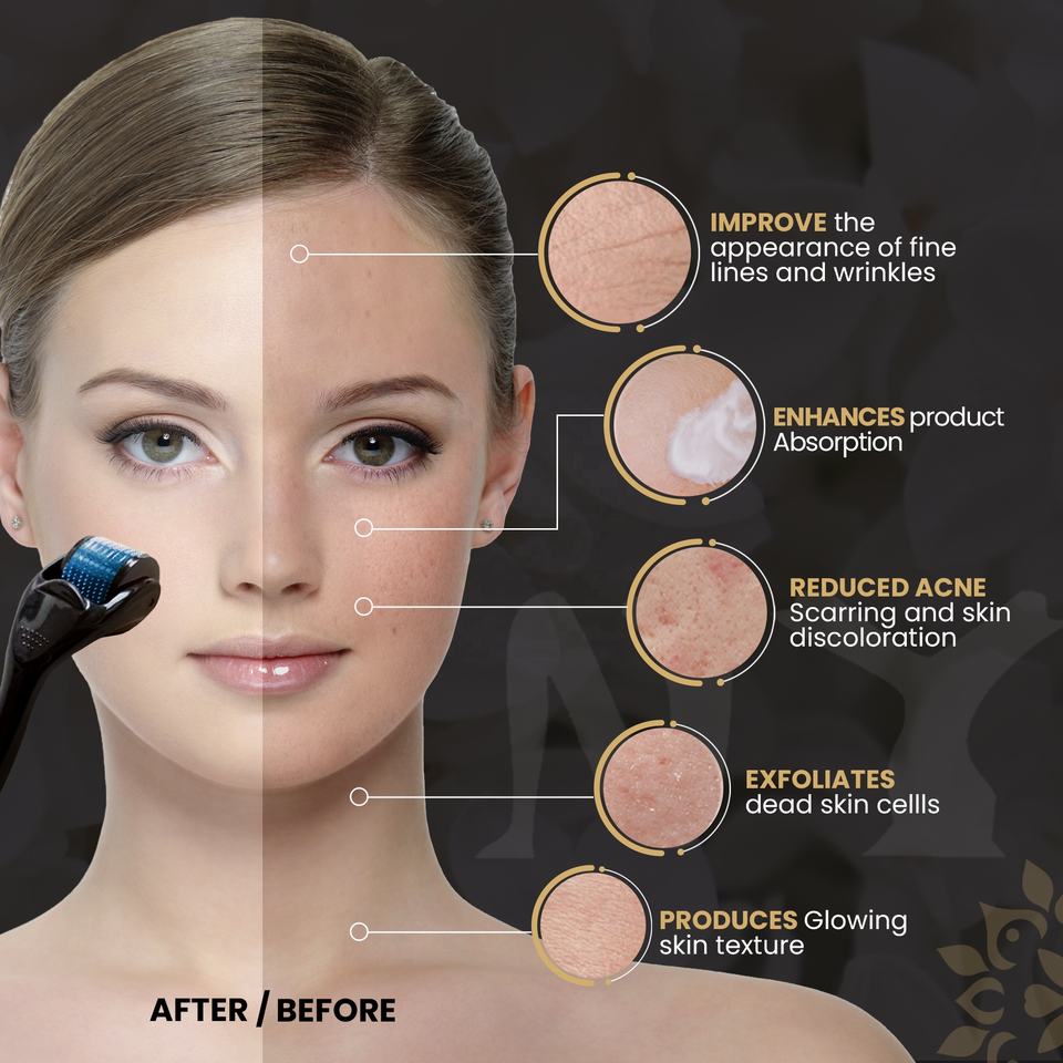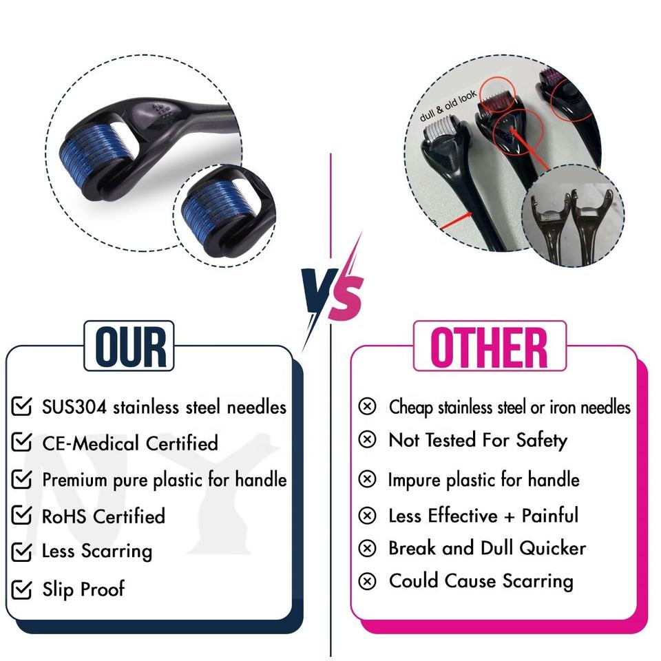 เครื่องกระตุ้นการเจริญเติบโตของเส้นขนบนใบหน้าสำหรับผู้ชาย ราคาประหยัดและคุณภาพดี ลูกกลิ้งไมโครนีดเดิลขนาด 1 มม. สำหรับการเจริญเติบโตของเส้นผม รักษาสิวและหนวด