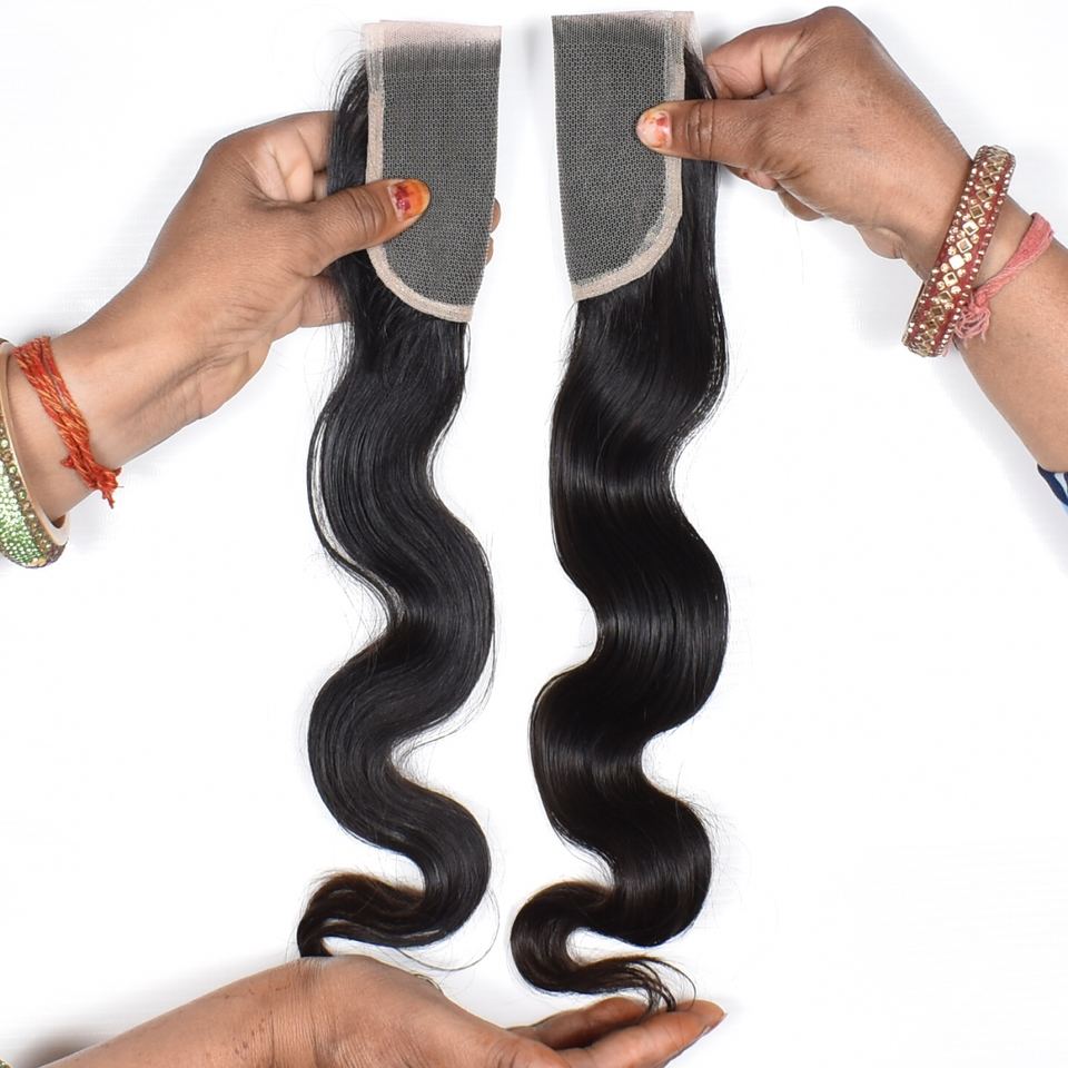 ผมแท้คุณภาพดีราคาถูกจากอินเดีย แบบ Remy ขนาด 4x4 ลอน Bodywave ความยาว 10-32 นิ้ว แบบเย็บสองชั้นด้วยเครื่องจักร ปราศจากสารเคมี