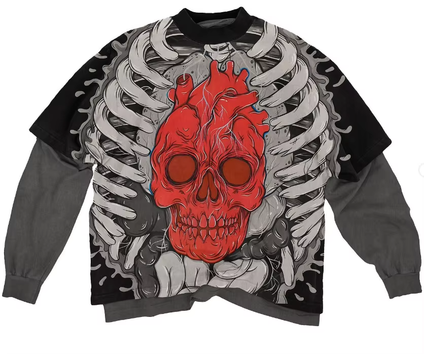 เสื้อยืดผู้ชายแขนยาวทรงบ็อกซี่โอเวอร์ไซส์ผ้าฝ้าย 100% สองชั้น พิมพ์ลายตัวอักษรด้วยเทคนิคซิลค์สกรีน ระบายอากาศได้ดี แห้งเร็ว คุณภาพสูง