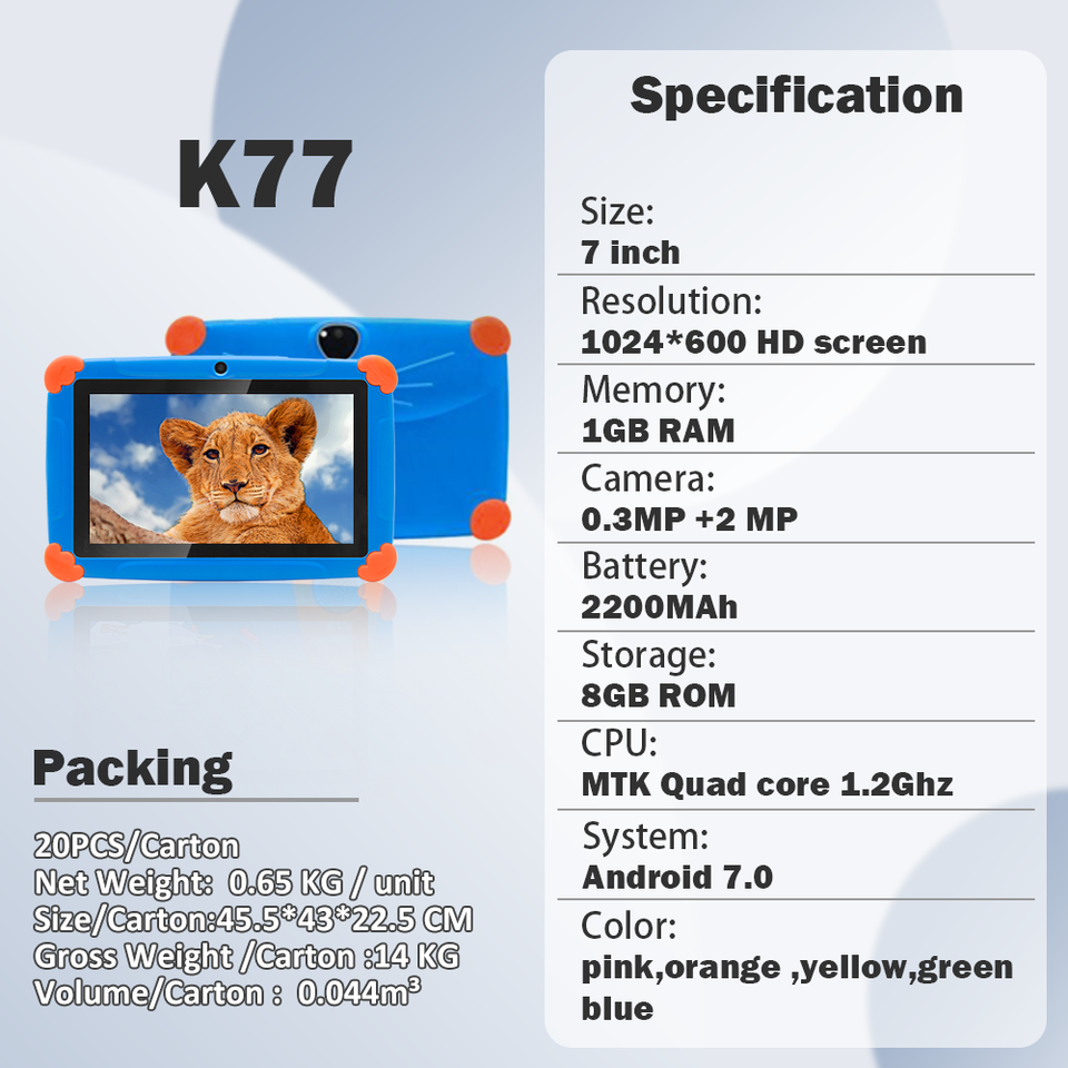 แท็บเล็ตเด็กราคาถูกที่สุด 7 นิ้ว พร้อม Wifi สำหรับเด็ก แท็บเล็ตเพื่อการศึกษา ระบบ Android 7 นิ้ว สำหรับเล่นเกม