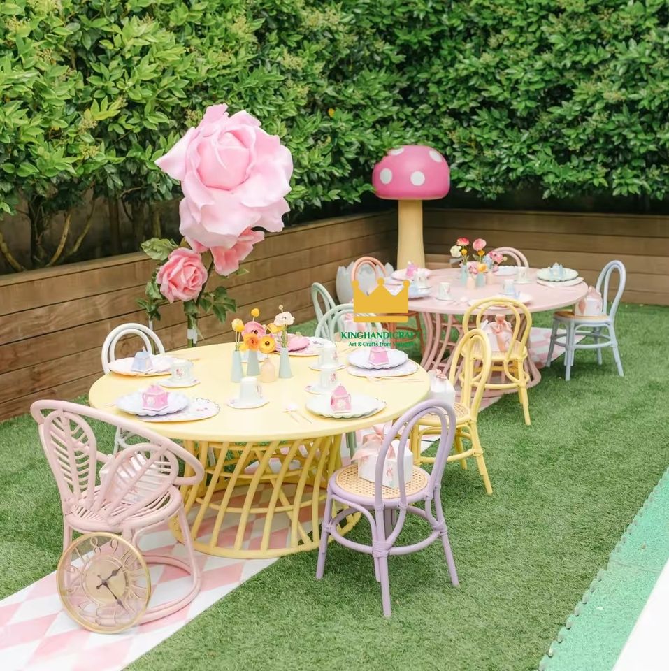 โต๊ะเด็กทำมือสีสันสดใส ราคาถูกที่สุด สำหรับงานปาร์ตี้ทั้งในและนอกบ้าน โต๊ะเด็กสำหรับรับประทานอาหาร เฟอร์นิเจอร์เด็กทำจากหวาย