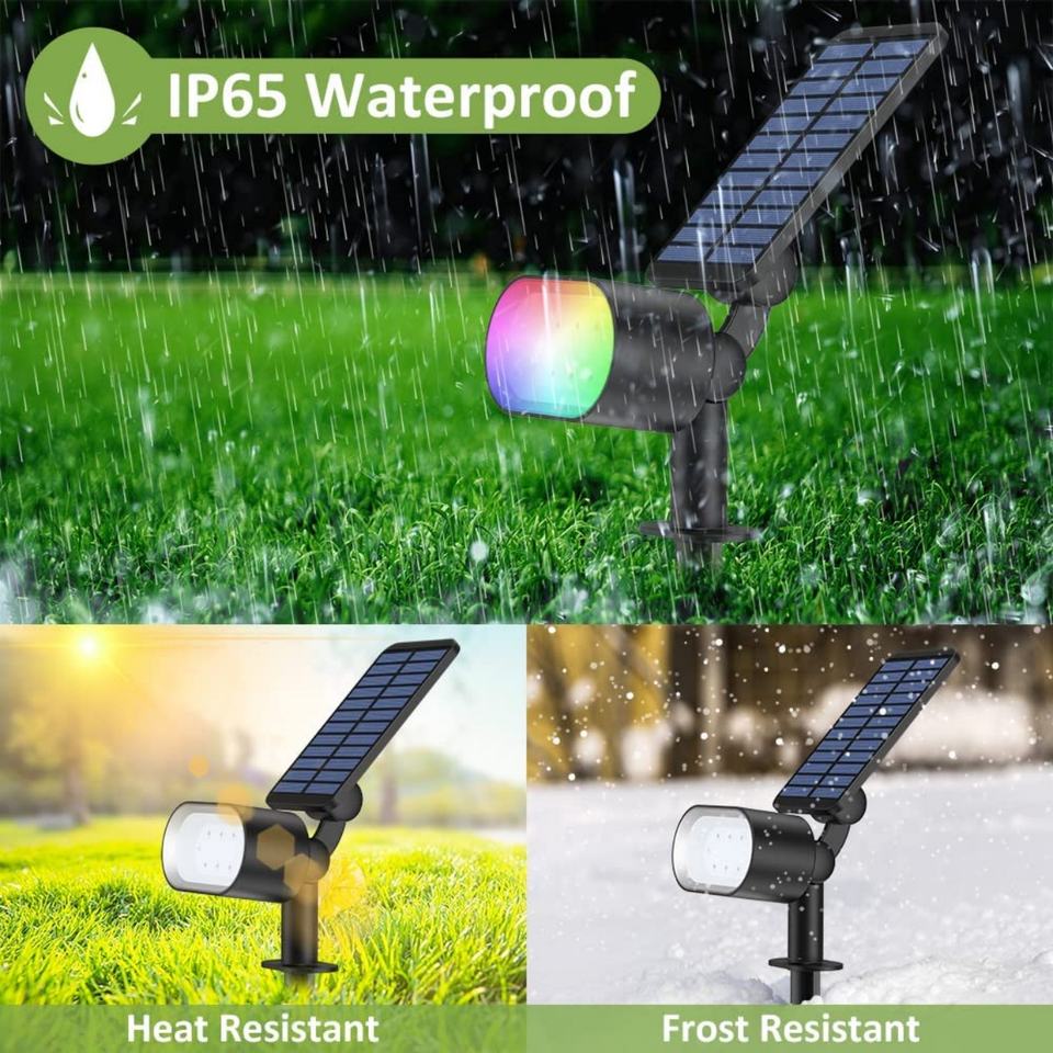 ไฟสปอตไลท์โซลาร์อัจฉริยะแบบใหม่ราคาถูกที่สุด ไฟติดผนังโซลาร์สองสี พร้อมรีโมทคอนโทรล กันน้ำ IP65