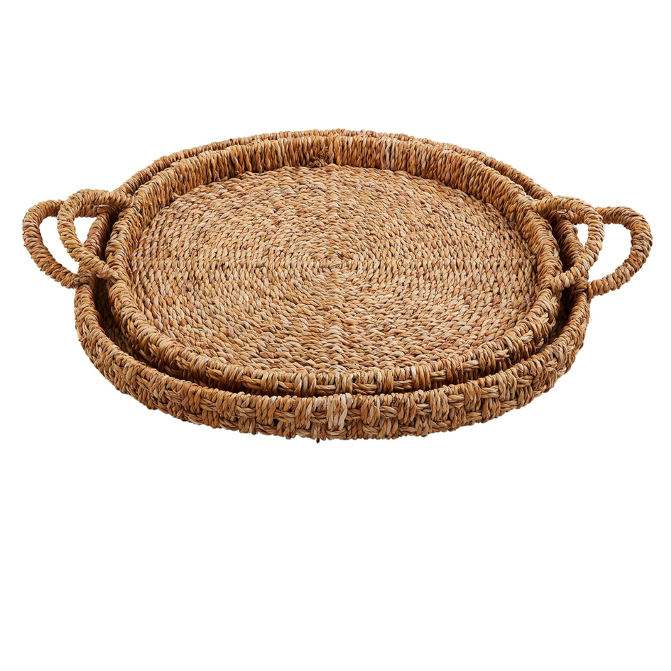 ถาดรองหญ้าทะเลทรงกลมธรรมชาติสำหรับใส่ของโต๊ะกาแฟถาดเสิร์ฟอาหารจากเวียดนาม