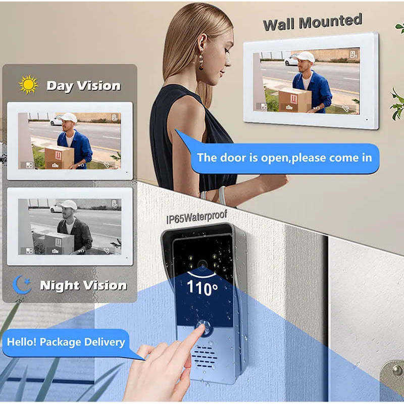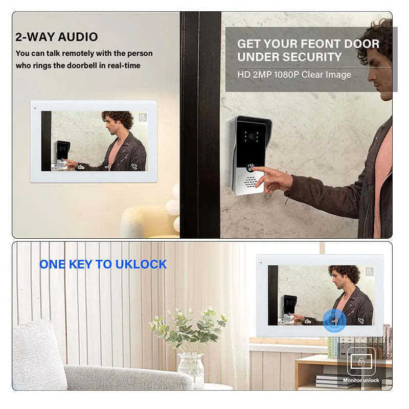 ระบบไวไฟอินเตอร์คอมไฟ LED สีขาวชุดโทรศัพท์อินเตอร์คอม4สาย