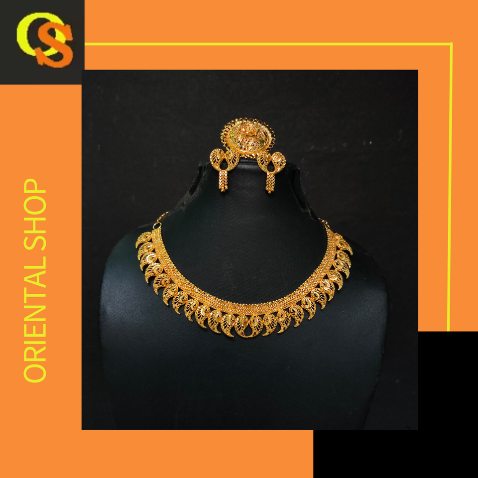 ชุดแหวนต่างหูสร้อยคอชุบทอง22K ชุดเครื่องประดับทำมือดีไซน์ล่าสุด