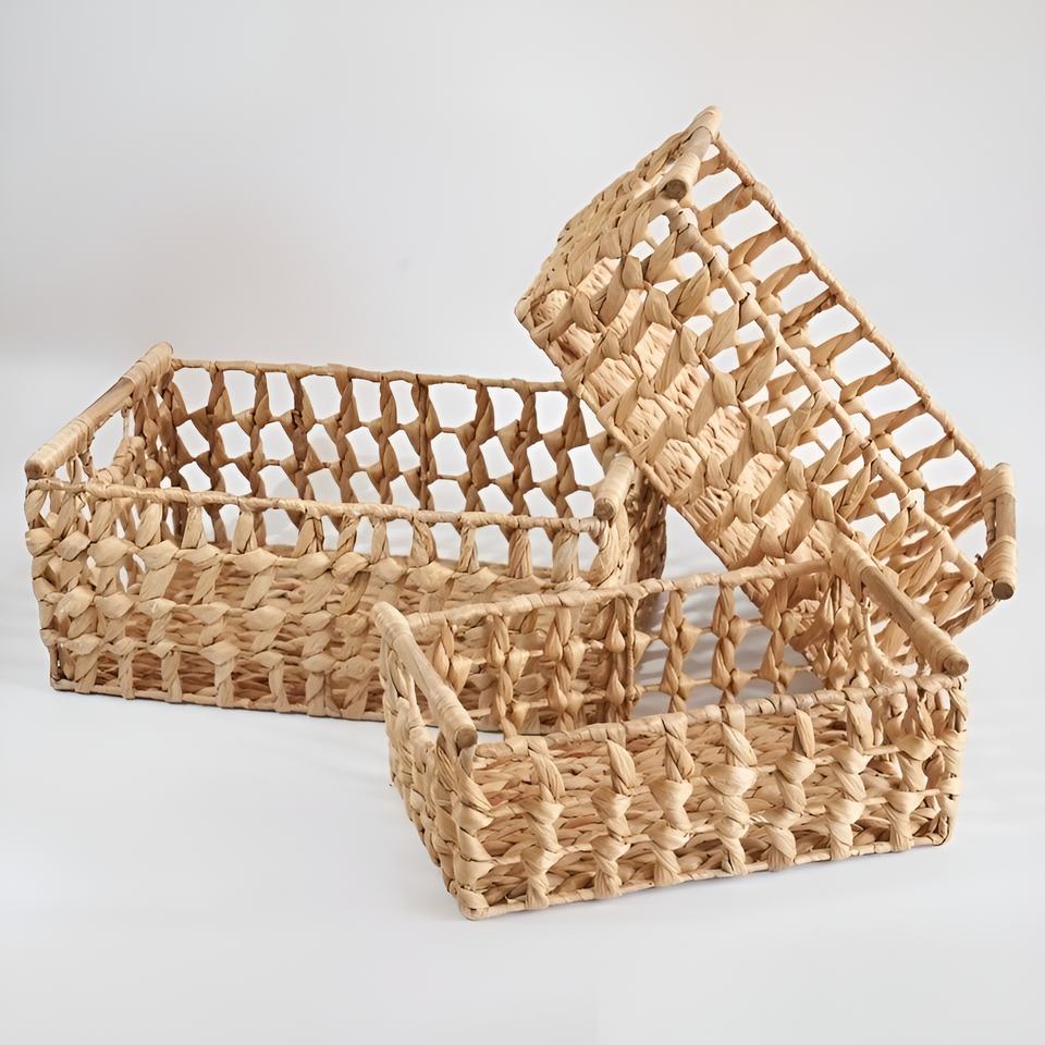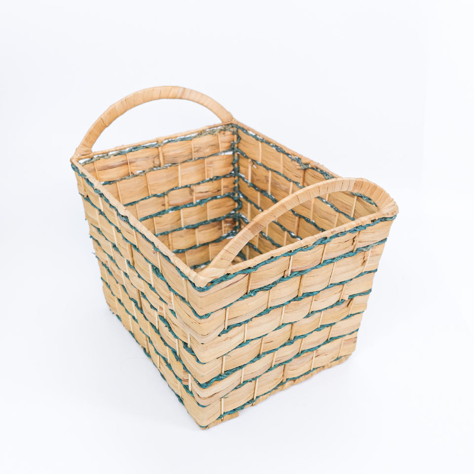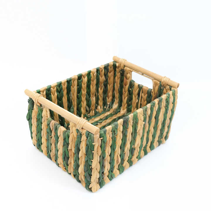 ตะกร้าใส่น้ำใยผักตบชวาอุปกรณ์จัดเก็บของแบบแฮนด์เมด