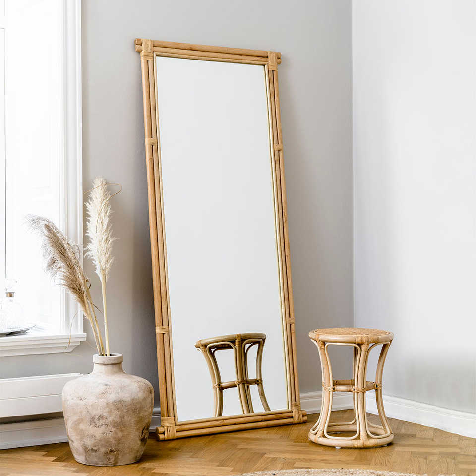 กระจกหวายแบบตั้งพื้นขนาดใหญ่ทำด้วยมือขนาดเต็มรูปแบบ