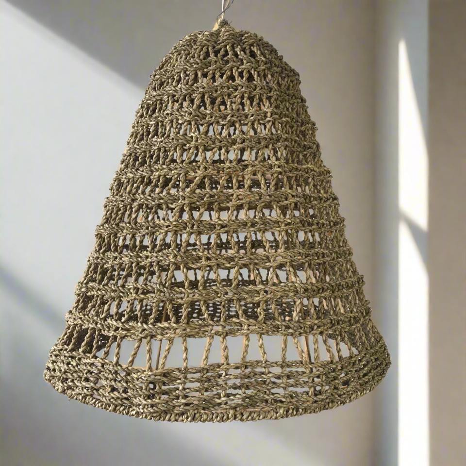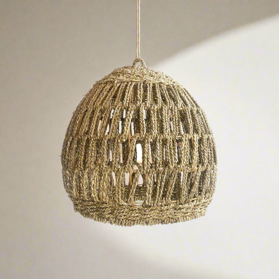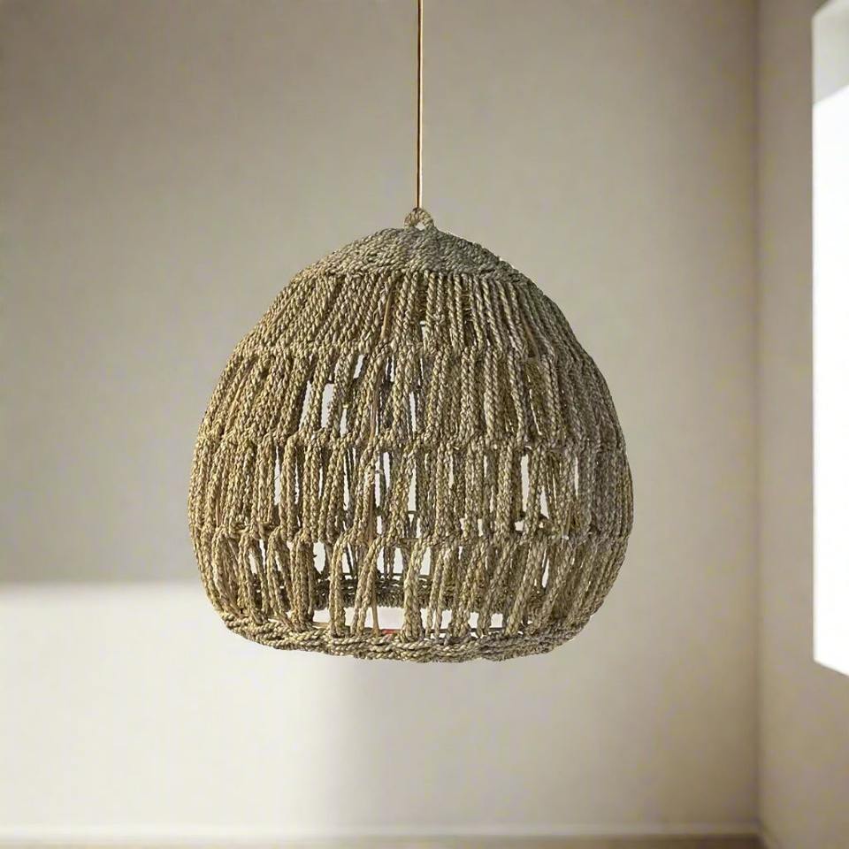โคมไฟระย้าจากต้นปาล์มชนิดหนึ่งธรรมชาติจี้หญ้าทะเลแบบทอโคมไฟสำหรับแขวนสินค้าส่งออกทั่วโลก