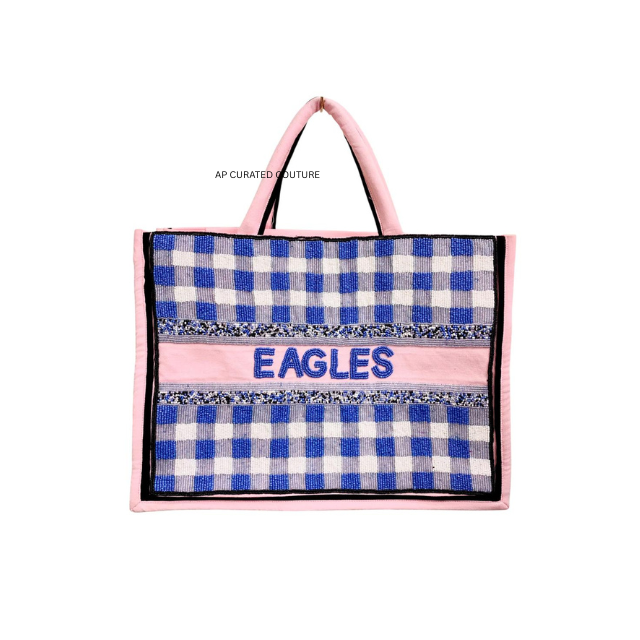 กระเป๋าโท้ทลายตารางประดับลูกปัด สำหรับวันแข่งขันกีฬา กระเป๋าโท้ททำมือรุ่นล่าสุด กระเป๋าโท้ทแบบกำหนดเองพร้อมออกแบบชื่อได้