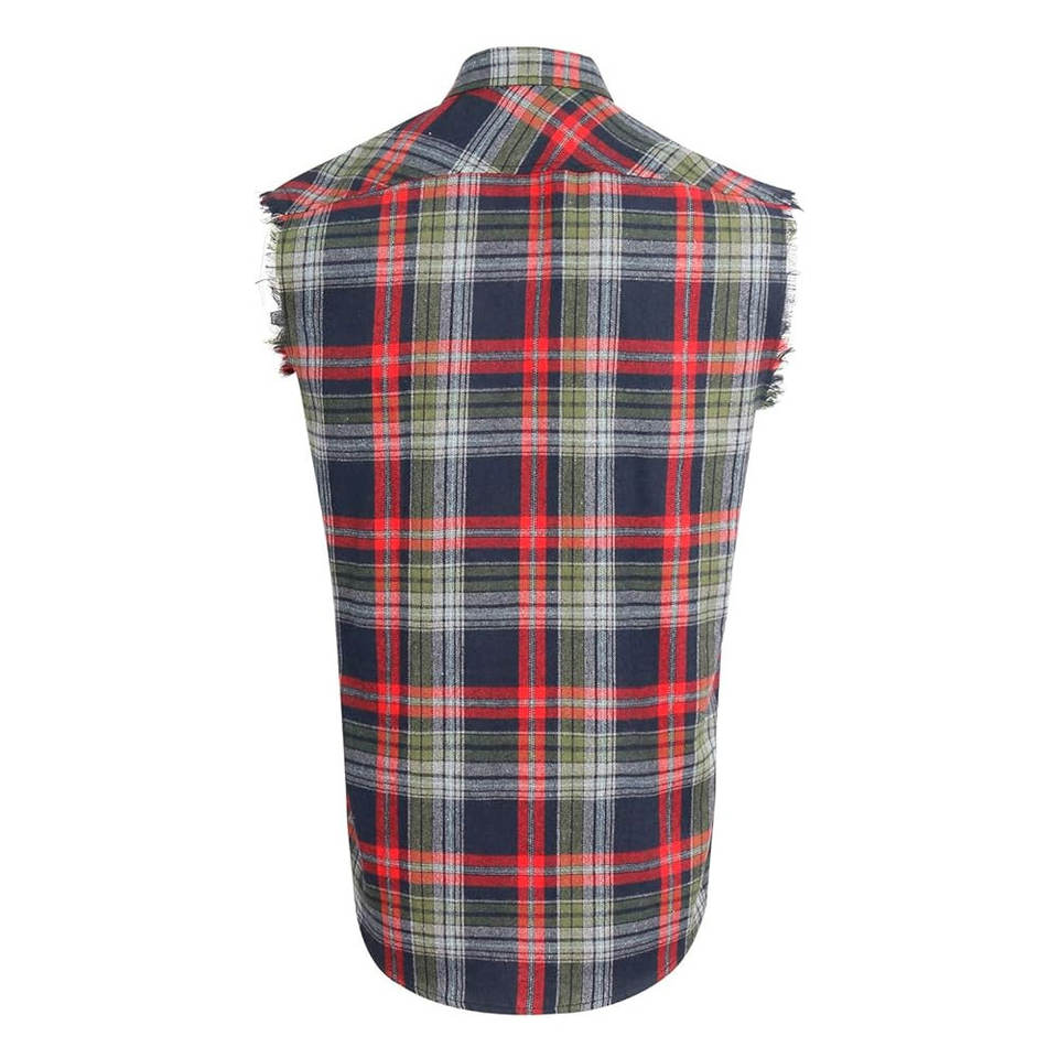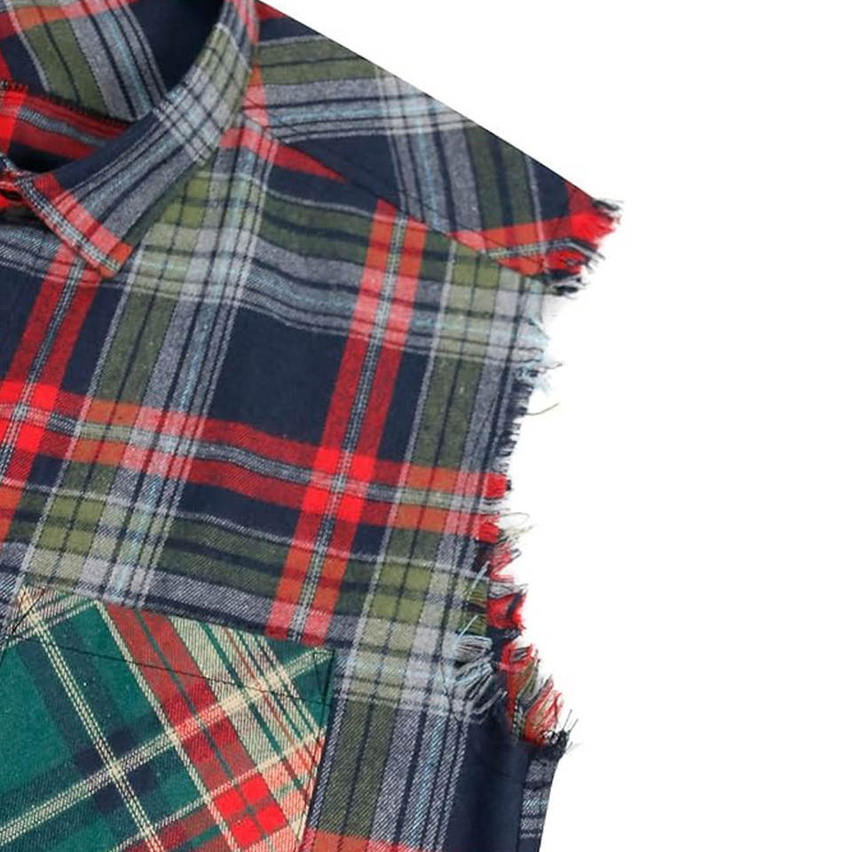 เสื้อกั๊กแขนกุดลายตารางผ้าแฟลนเนล ตัดขอบดิบ ติดกระดุม สไตล์ลำลอง วินเทจ คาวบอยตะวันตก