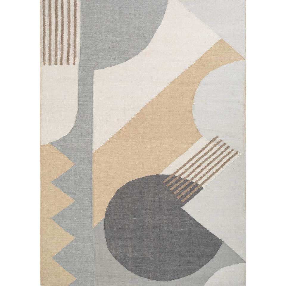 พรมขนสัตว์ทอมือลายตารางสีงาช้าง รุ่น ADWP-13030 สำหรับห้องนั่งเล่นวัยรุ่น ห้องนอน ลายกราฟิกนามธรรม พรมปูพื้นห้องโถงรูปสี่เหลี่ยมผืนผ้า