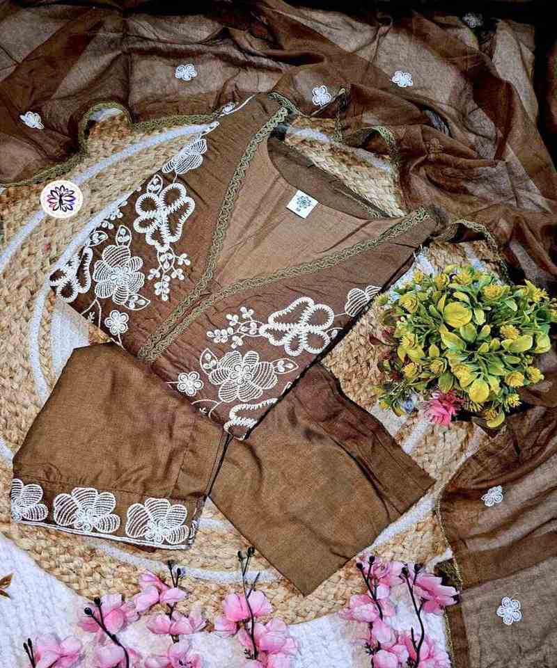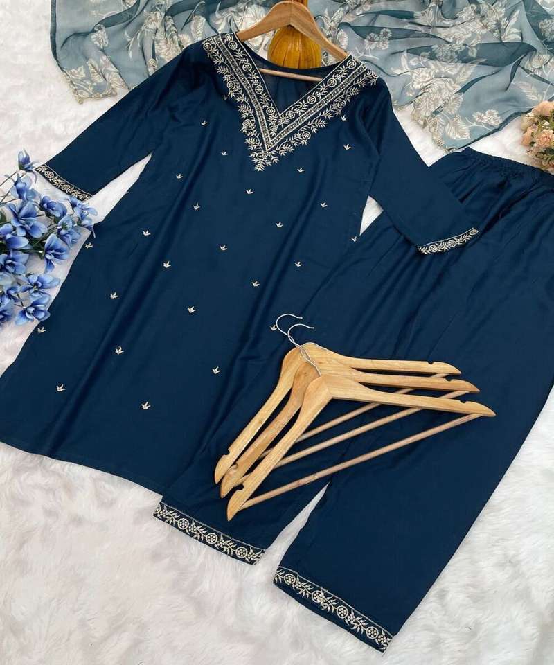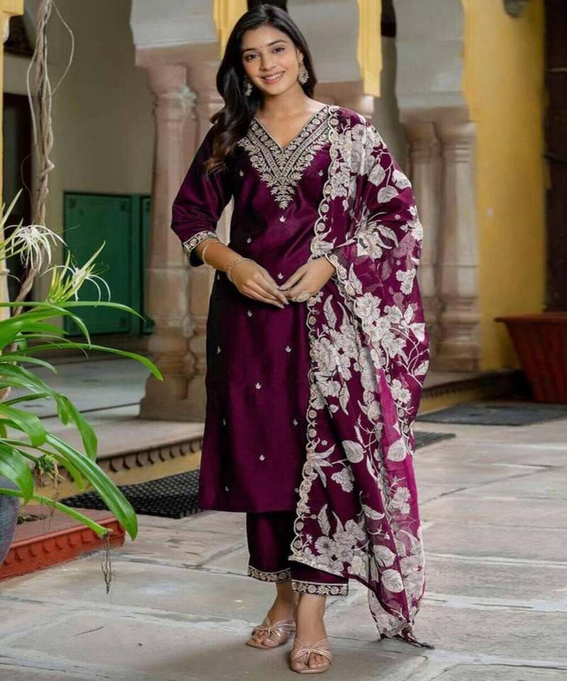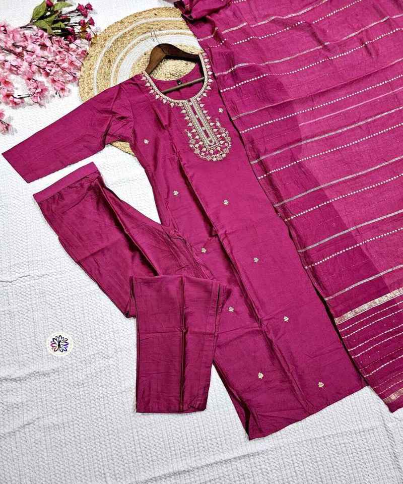 Checks Party Wear Linen Salwar Kameez Set with Piping Detailing and Embroidery for Chic Charm.