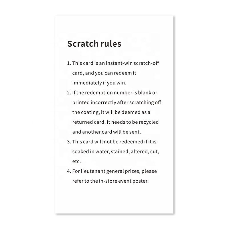 ชื่อสินค้า:การพิมพ์ออกแบบบัตรขูดรางวัล