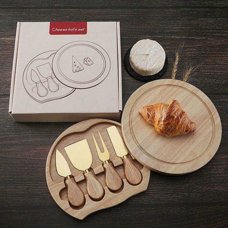 ชุดเขียงชีสและอุปกรณ์เสริม - ถาดไม้สำหรับเสิร์ฟชีสและมีดสแตนเลส ชุดของขวัญเขียงไม้โอ๊ค