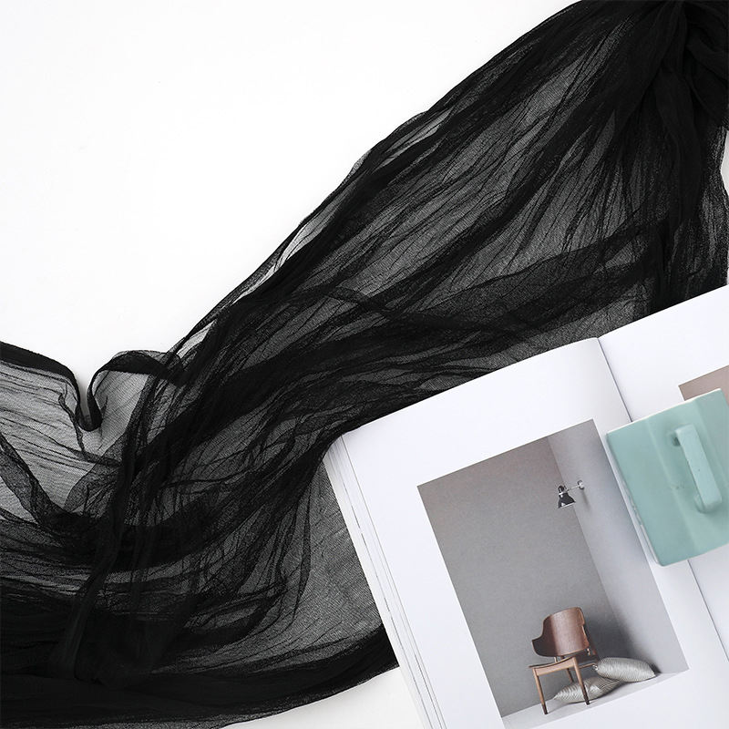 ผ้าปูโต๊ะสีดำทอแบบชีสคลอธ 100% โพลีเอสเตอร์ ดีไซน์เรียบง่ายและทันสมัยสำหรับการตกแต่งสไตล์โมเดิร์น